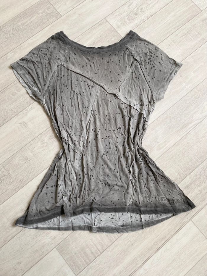 T shirt tacheté gris avec découpes asymétrique - photo numéro 1