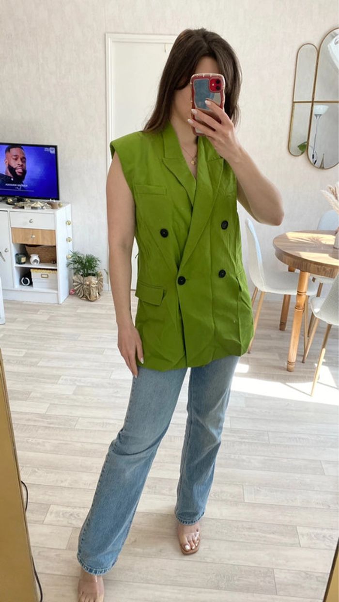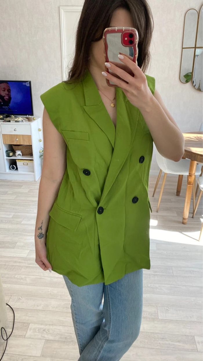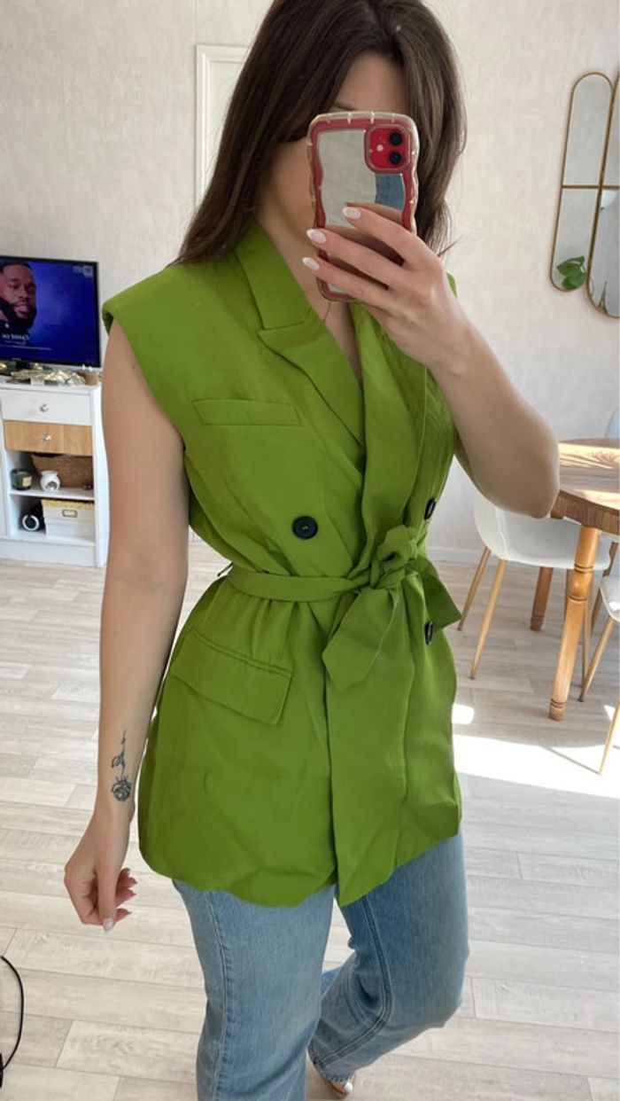 Veste sans manche blazer avec ceinture - photo numéro 1