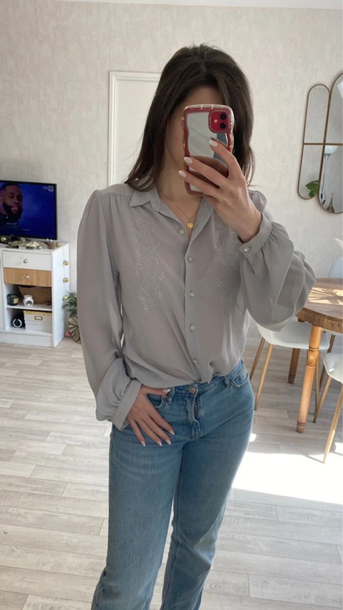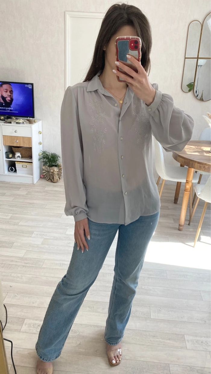 Chemise grise  bleuté légère brodée - photo numéro 1