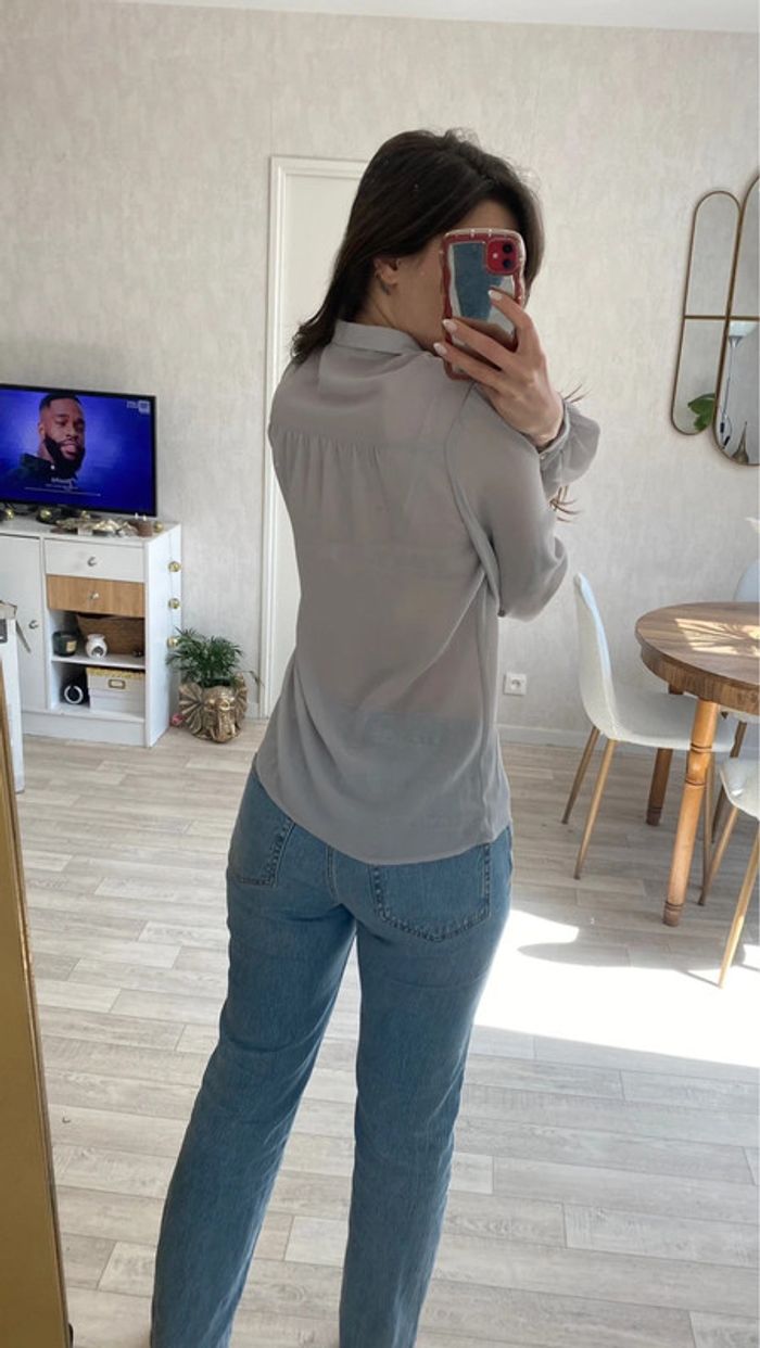 Chemise grise  bleuté légère brodée - photo numéro 4