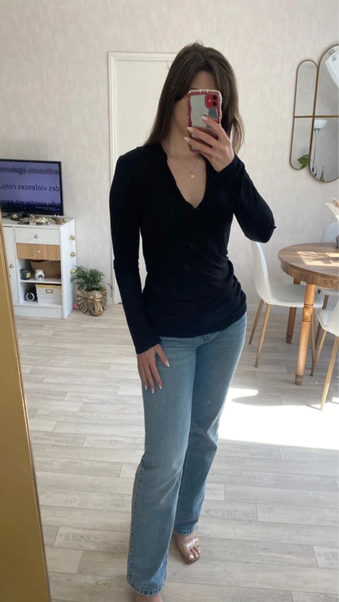 Taille 3, t shirt très long presque comme une tunique. 3 boutons devant avec mini volants #mojito1Taille38 M