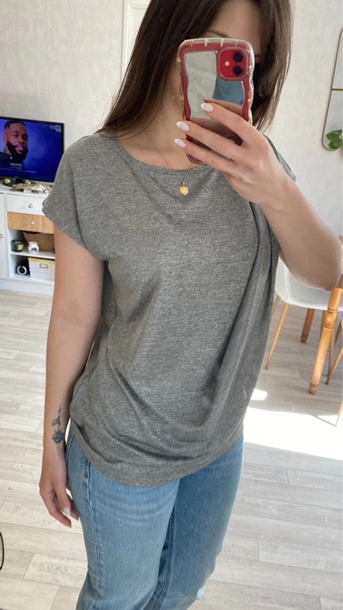 T shirt gris chiné asymétrique - photo numéro 1