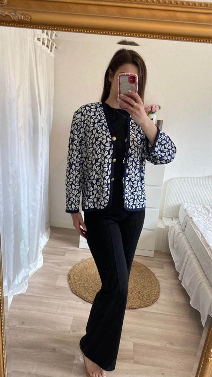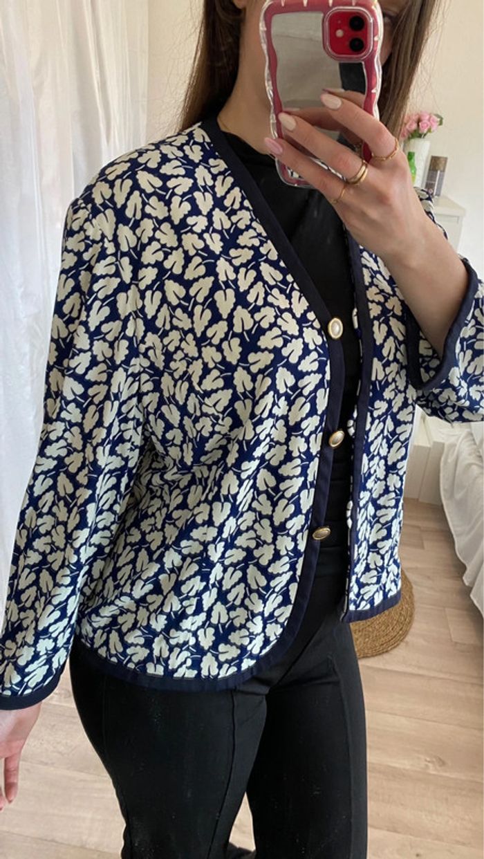 Veste avec jolies boutons chic, motifs feuille blanc #mojito1Taille40