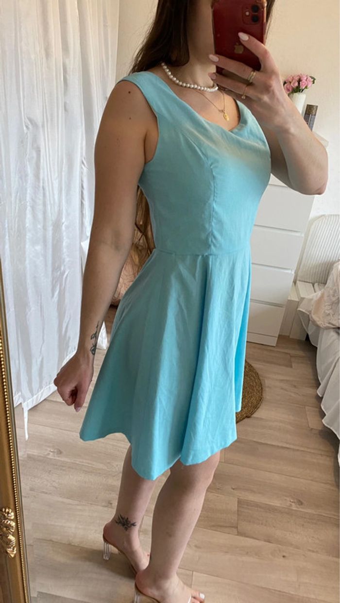 Robe patineuse vintage chic bleu ciel - photo numéro 2