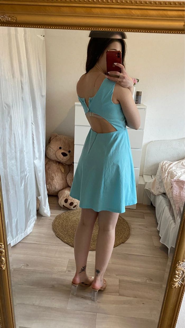 Robe bleu ciel fait main , rétro vintage , se ferme avec deux boutons et une fermeture au dos. Bas du dos nu, #mojito1Taille36