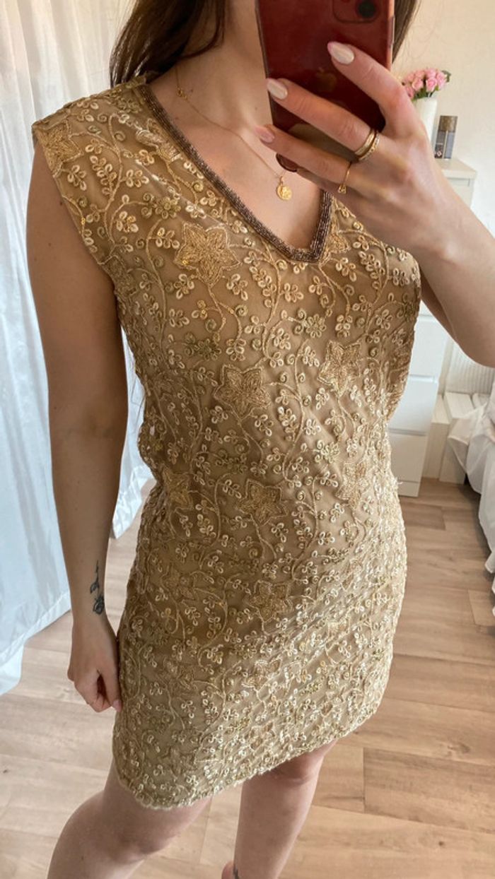 Robe sans manche avec doublure à l’intérieur, sequins cousu. Fermeture au dos #mojito1Taille38