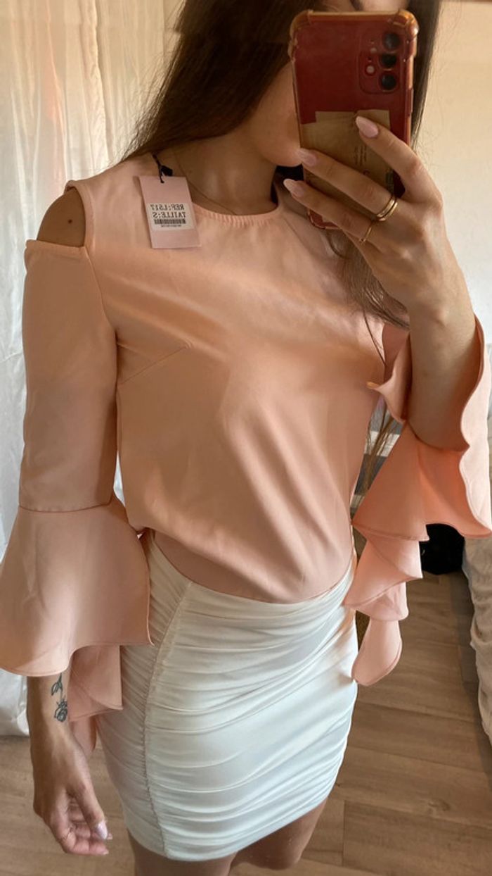 Haut rose à manches volantes - photo numéro 1