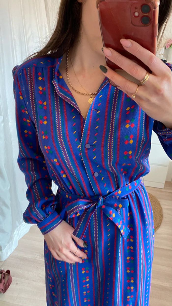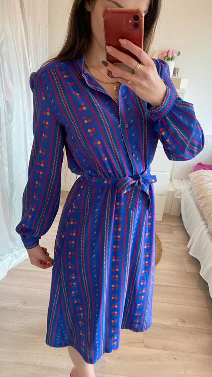 Robe rétro chemisier avec ceinture , motifs rétro losanges et lignes #mojito1Taille40
