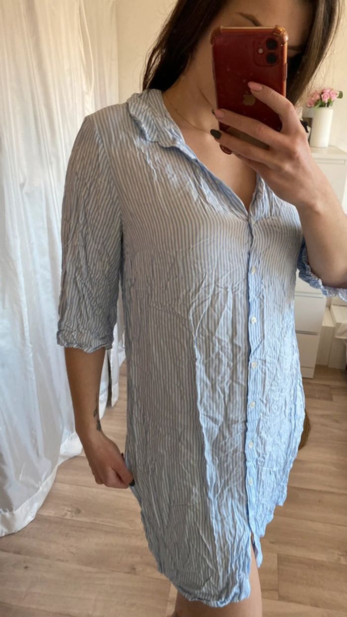 Robe chemise à rayures manche courte - photo numéro 1