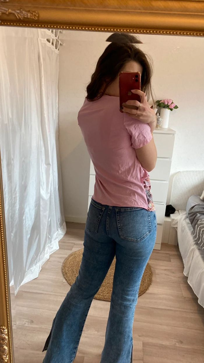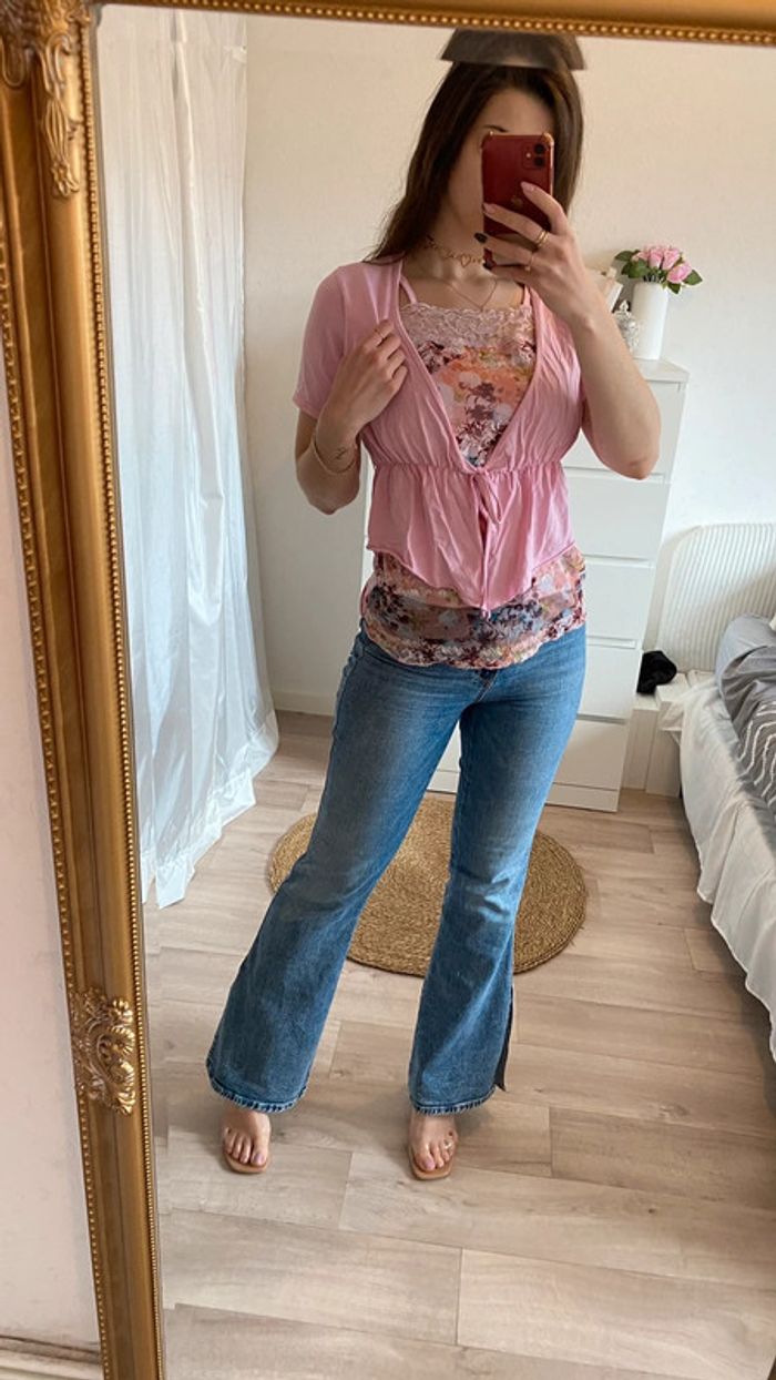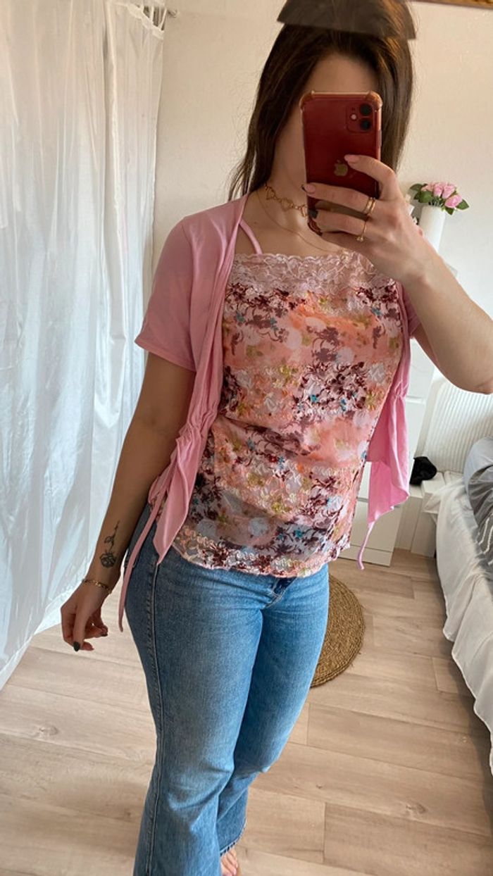 Haut manche courte rose bonbon et fleurie, se noue devant. Top fleurie doubler #mojito1Taille38