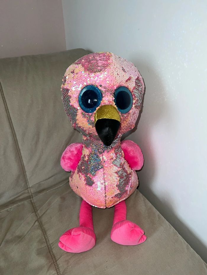 Peluche Flamand rose paillettes