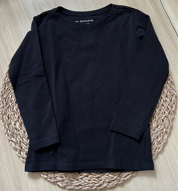 Lot de 3 tee-shirts manches longues en bon état : -2 sous-pulls en coton et stretch, manches longues, cols roulés, 1 noir et 1 bleu marine, taille : 92cm -1 t-shirt manches longues stretch, noir uni, col rond, taille : 92cm Envoi rapide et soigné 📦