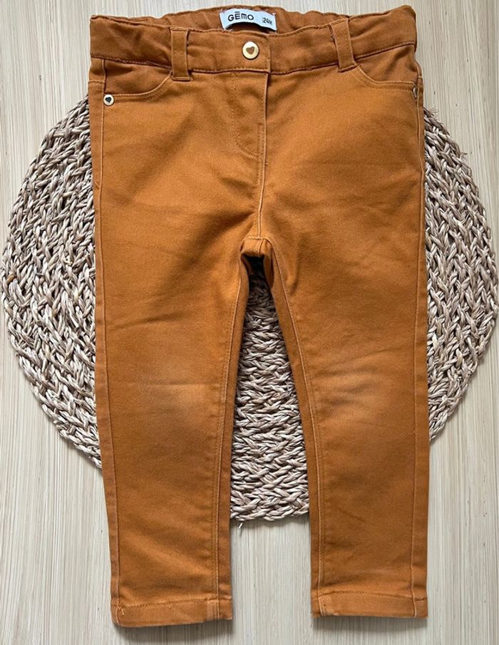 Lot de 2 pantalons en bon état : -1 pantalon en twill de la marque Gémo, taille ajustable à l'intérieur par boutons élastiqués, ouverture devant par bouton pression cœur, 2 poches à l’avant, 2 poches plaquées au dos, passants pour ceinture, coloris camel, taille : 24mois -1 pantalon de la marque TEX, taille ajustable à l'intérieur par boutons élastiqués, ouverture devant par bouton pression, 2 poches à l’avant, 2 poches plaquées au dos, passants pour ceinture, coloris rose clair, taille : 23mois Envoi rapide et soigné 📦