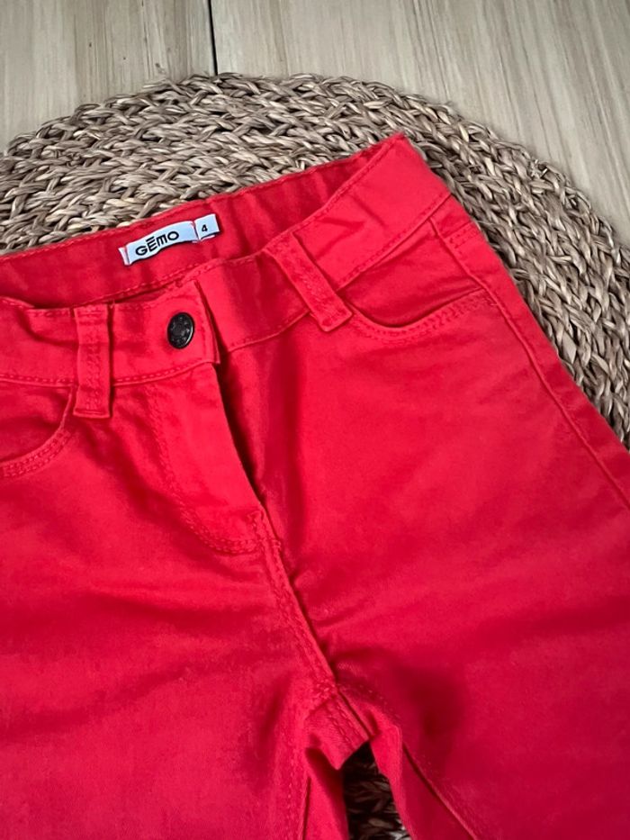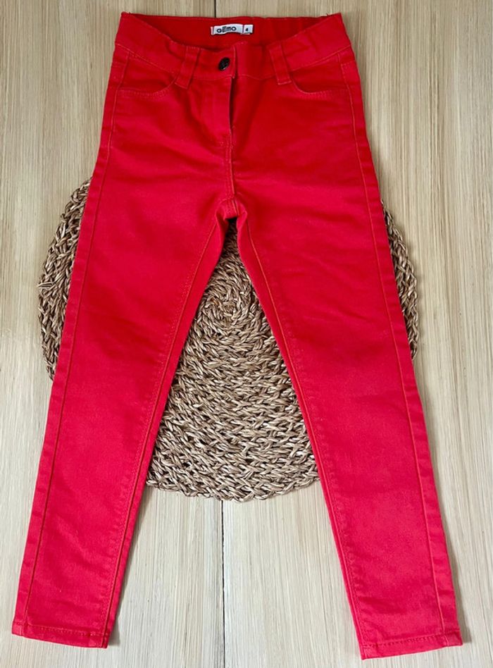 Pantalon slim de la marque Gémo en très bon état. Coupe jean slim, matière extensible stretch (98% coton et 2% élasthanne), taille réglable par élastique intérieur boutonné, passants ceinture, 2 poches cavalières avant, 2 poches plaquées arrière, ouverture par bouton pression et petit zip, coloris rouge vermillon, taille : 4 ans. Valeur neuf : 14,99€ Envoi rapide et soigné 📦