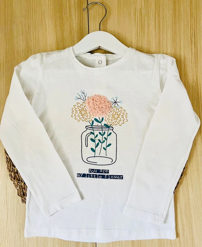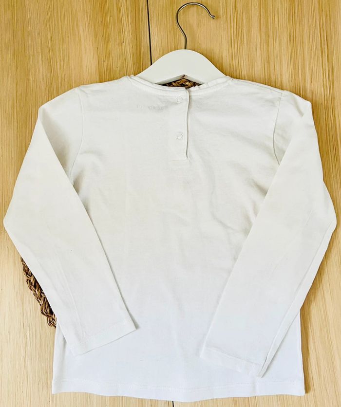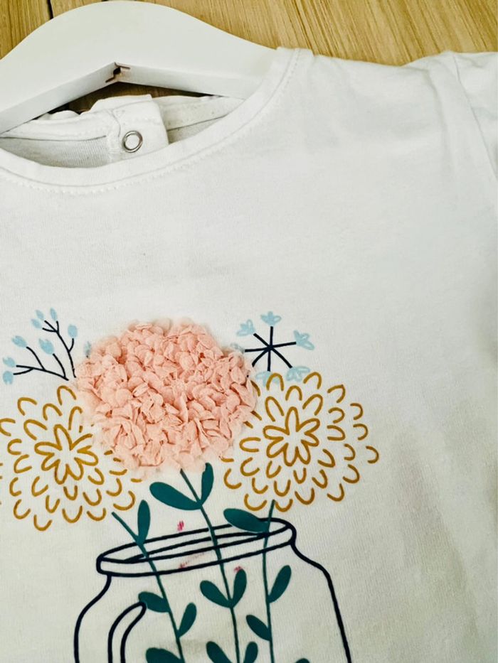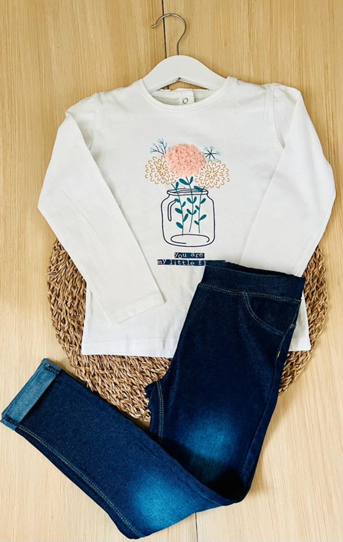 Ensemble de 2 pièces de la marque Gémo en bon état : -1 tee-shirt manches longues 100% coton biologique, coloris blanc orné d’un large motif fleuri en relief et d’une inscription, col rond souligné par un biais, ouverture par 3 boutons pression dans le haut du dos, taille : 4 ans -1 jegging extensible en coton et élasthanne, finitions jean légèrement délavé, surpiqûres contrastantes, 2 poches plaquées au dos, revers cousus en bas de jambe, ceinture ajustable avec élastique intérieur boutonné, taille : 4 ans Valeur ensemble neuf : 16,98€ Envoi rapide et soigné 📦