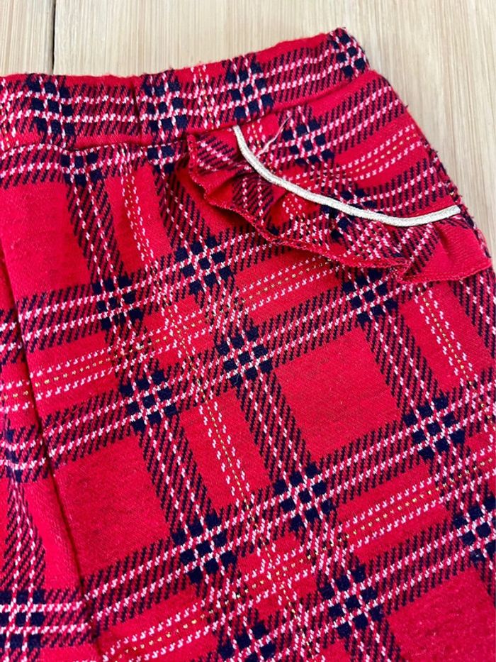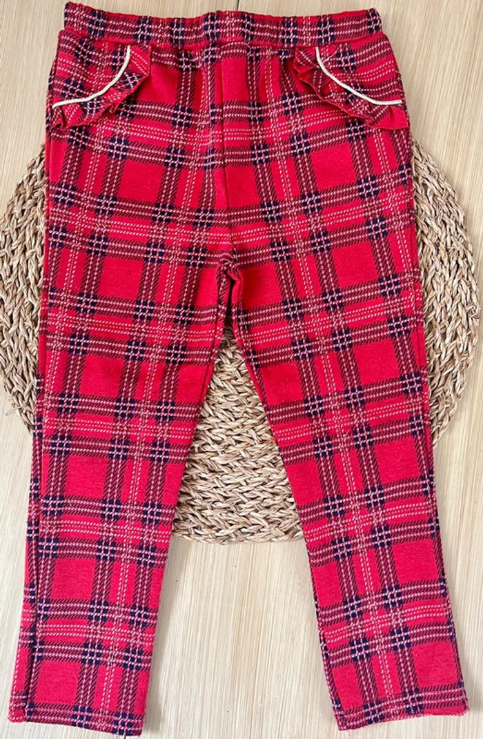 Pantalon à carreaux de la marque Primark en bon état. Coupe legging, tissu chaud et épais, taille plate élastiquée, fausses poches fantaisies avec volants et surpiqûres dorées, taille : 24-36 mois Envoi rapide et soigné 📦