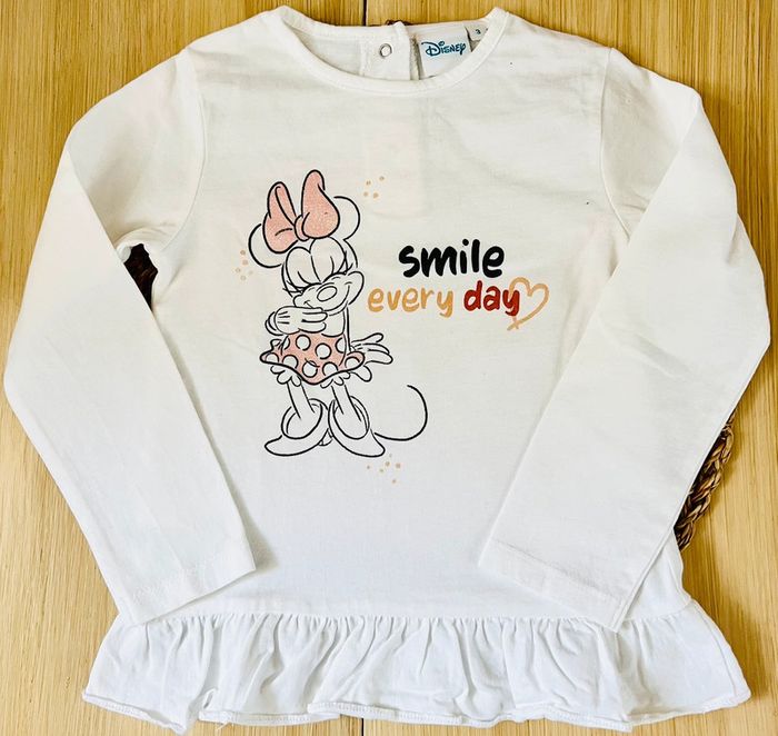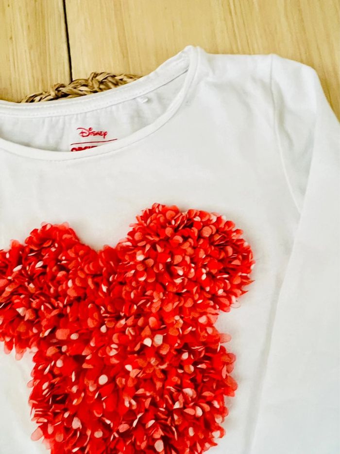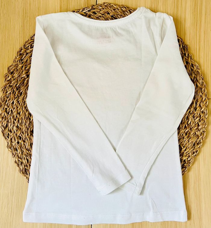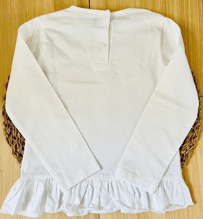 Lot de 2 tee-shirts de la marque Disney en bon état : -1 t-shirt manches longues, coloris blanc avec tête de Mickey Mouse en relief de petites pétales brodées, taille : 3 ans / 98 cm -1 t-shirt manches longues, 100% coton, col rond bordé par un biais, ouverture par 2 boutons pression dans le dos, bas volanté, taille : 3 ans Valeur neuf du lot : 21,98€ Envoi rapide et soigné 📦