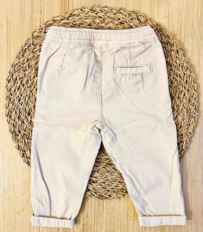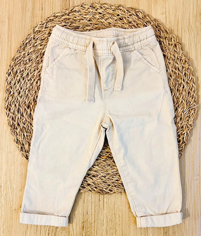 Pantalon style chino de la marqueTEX baby en très bon état. Pantalon en toile 100% coton, coloris beige, taille élastiquée avec cordon de serrage, 2 poches avant et 1 poche arrière, taille : 9 mois Valeur neuf : 9,99€ Envoi rapide et soigné 📦