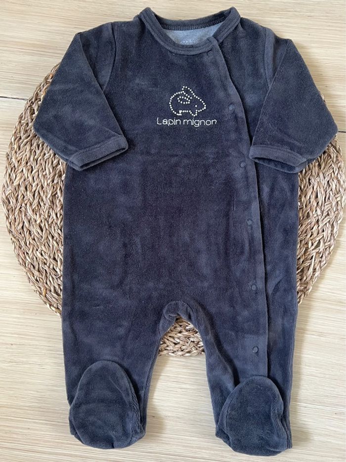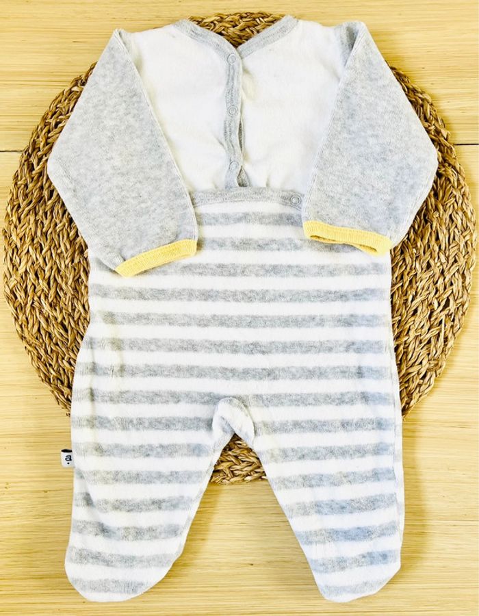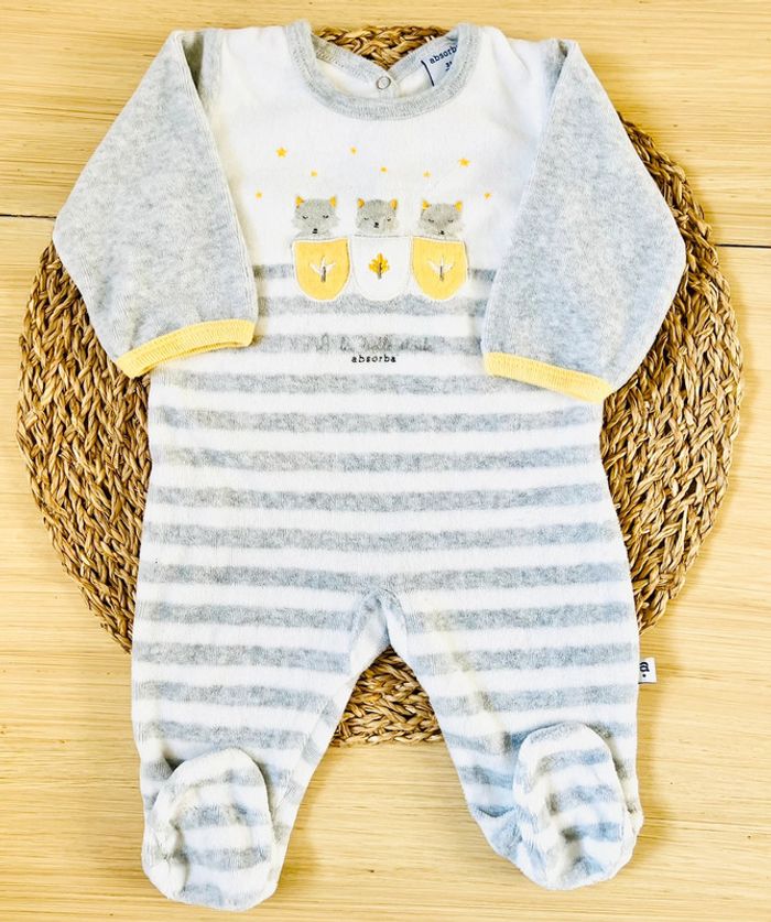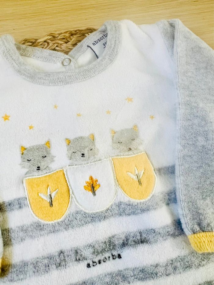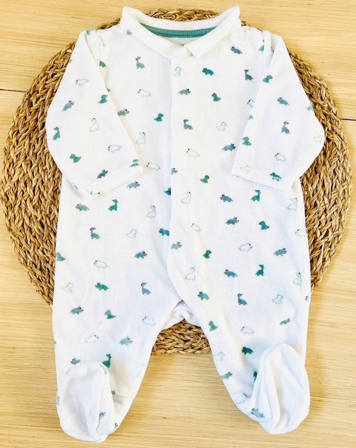 Lot de 3 pyjamas dors-bien en très bon état : -1 pyjama en velours de la marque Obaïbi, blanc avec motifs petits dinosaures, col chemise, ouverture pressionnée sur l’avant du col aux pieds, taille : 3 mois/59 cm -1 pyjama en velours de la marque Absorba, blanc rayé gris clair avec broderie à l’avant, ouverture pressionnée au dos, taille : 3 mois/59 cm -1 pyjama en velours de la marque Vertbaudet, gris anthracite avec motif lapin sur la poitrine, ouverture pressionnée sur l’avant du col au pied, taille : 3 mois Valeur neuf de l’ensemble : 67,98€ Envoi rapide et soigné 📦