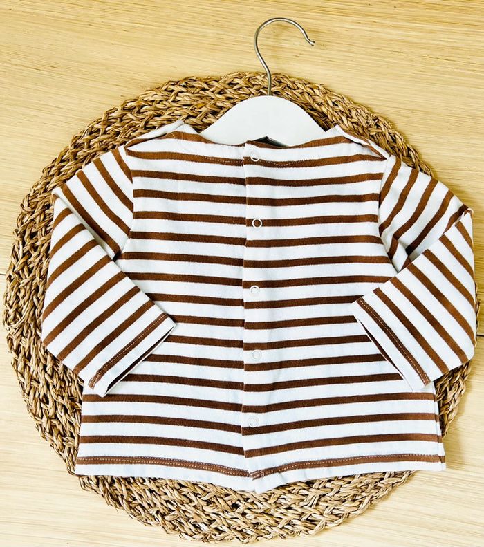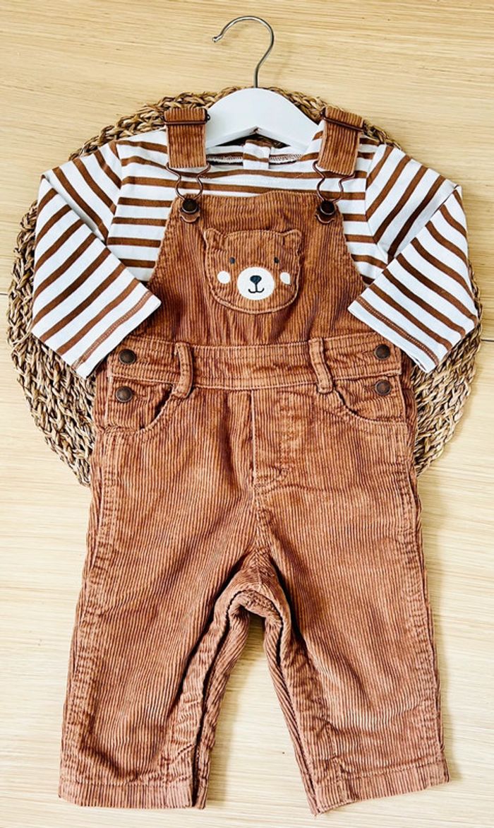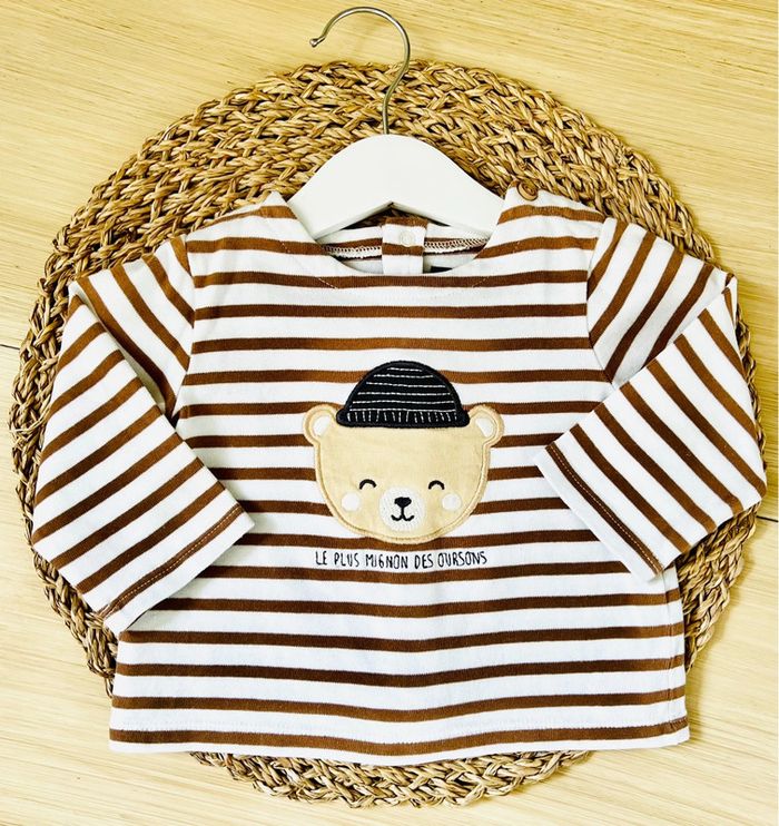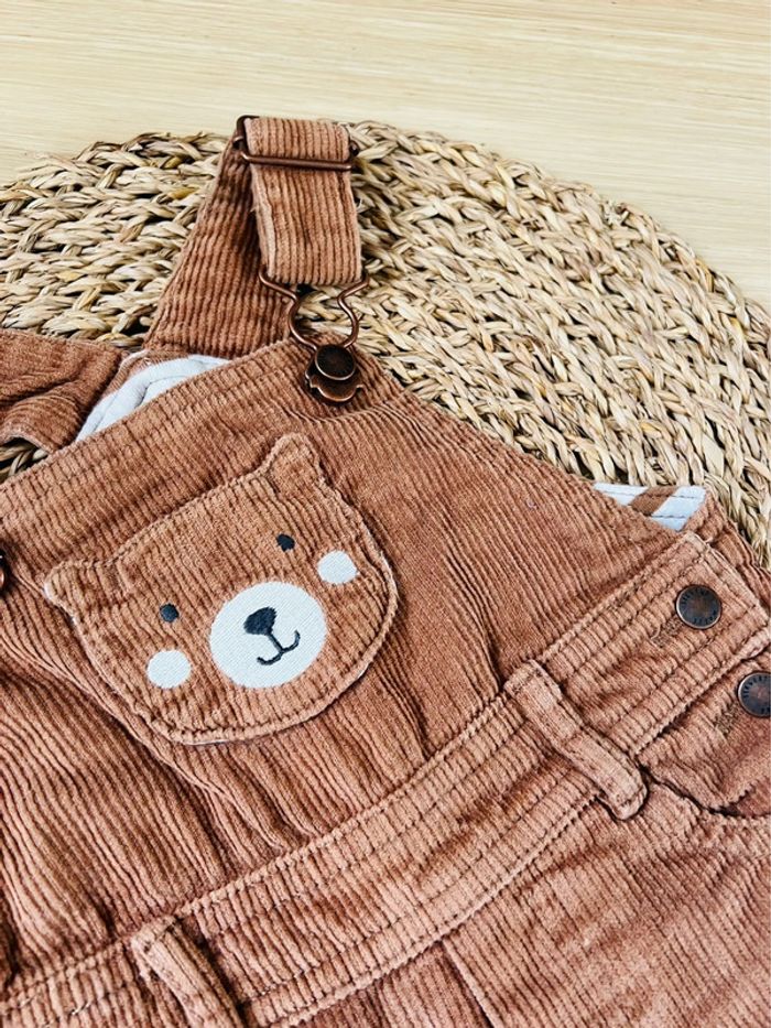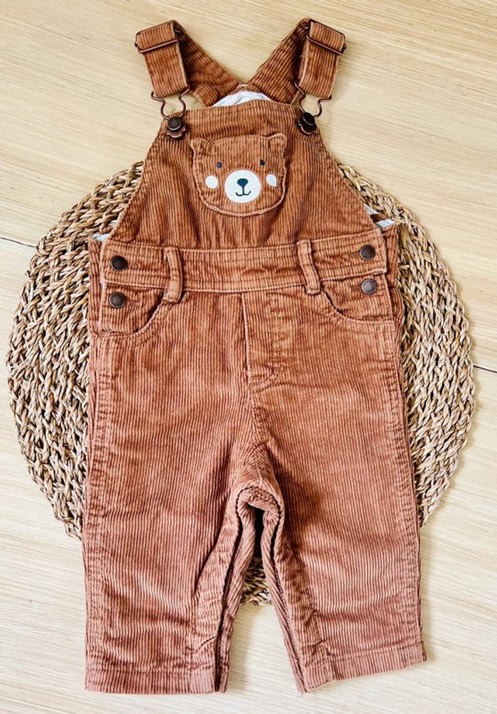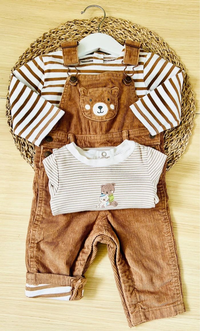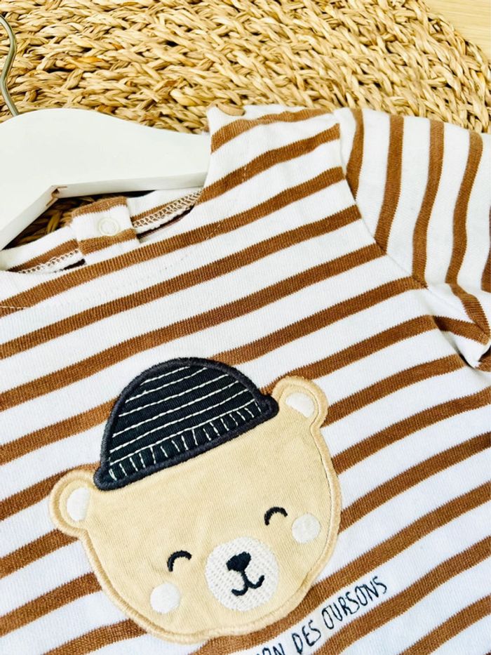 Ensemble 3 pièces de la marque Sergent Major en très bon état : -Tee-shirt manches longues rayé marron et blanc avec broderie ourson sur le devant, ouverture à boutons-pression au dos, boutons décoratifs aux épaules, 100% coton, taille : 6 mois/68 cm -Salopette longue marron en velours côtelé, ouverture boutons-pression à la taille et à l'entrejambe, bretelles ajustables, poche plaquée sur le buste en forme de visage d'ourson, 4 poches, doublure intégrée à imprimé à rayures, 100% coton, taille : 6 mois/68 cm -Body rayé côtelé marron et écru avec ourson imprimé sur le buste, col et entrejambe contrastés, ouverture col et entrejambe par boutons à pression, 100% coton, taille : 6 mois/68 cm Valeur neuf de l’ensemble : 66,97€ Envoi rapide et soigné 📦