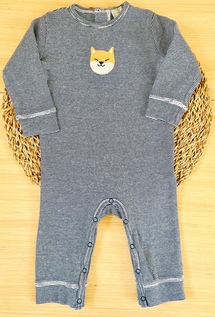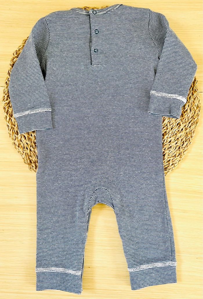 Pyjama dors-bien rayé de la marque Bout’Chou en très bon état. Pyjama en jersey rayé bleu marine et blanc avec motif à l’avant, ouverture pressionnée à l’entrejambe et au col à l’arrière, taille : 9 mois Valeur neuf : 15,99€ Envoi rapide et soigné 📦