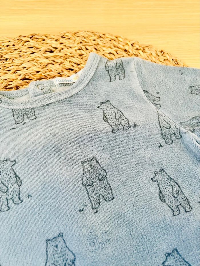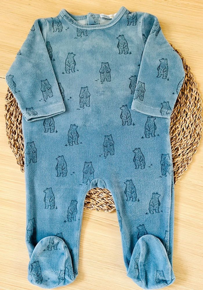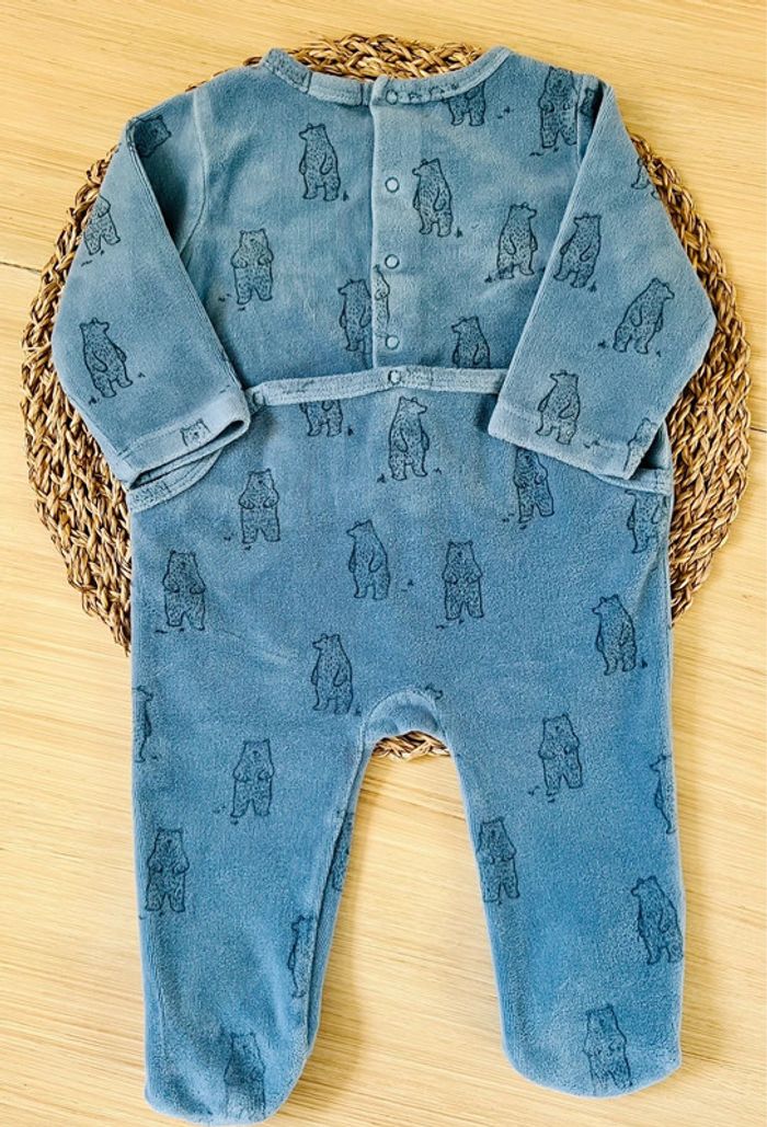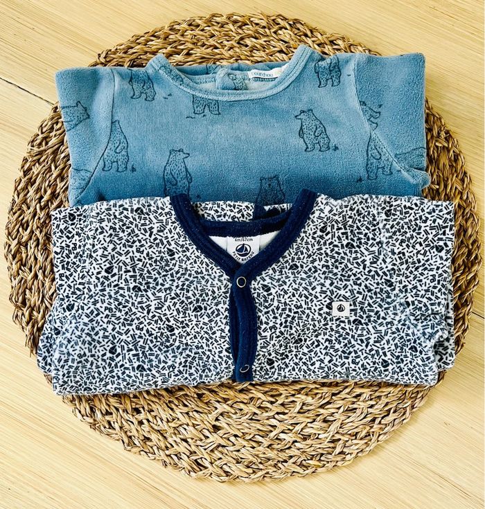 Lot de 2 pyjamas dors-bien en bon état : -1 pyjama en velours de la marque Petit Bateau, bleu marine et blanc à motifs, ouverture par pressions à l’avant du col jusqu’aux pieds, taille : 6 mois/67 cm -1 pyjama en velours de la marque Bout’chou, bleu avec motifs oursons, ouverture par pressions au dos, taille : 6 mois Valeur neuf du lot : 39,98€ Envoi rapide et soigné 📦