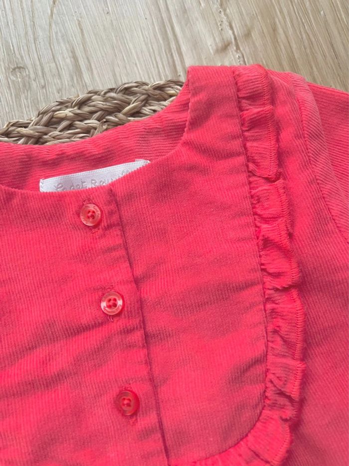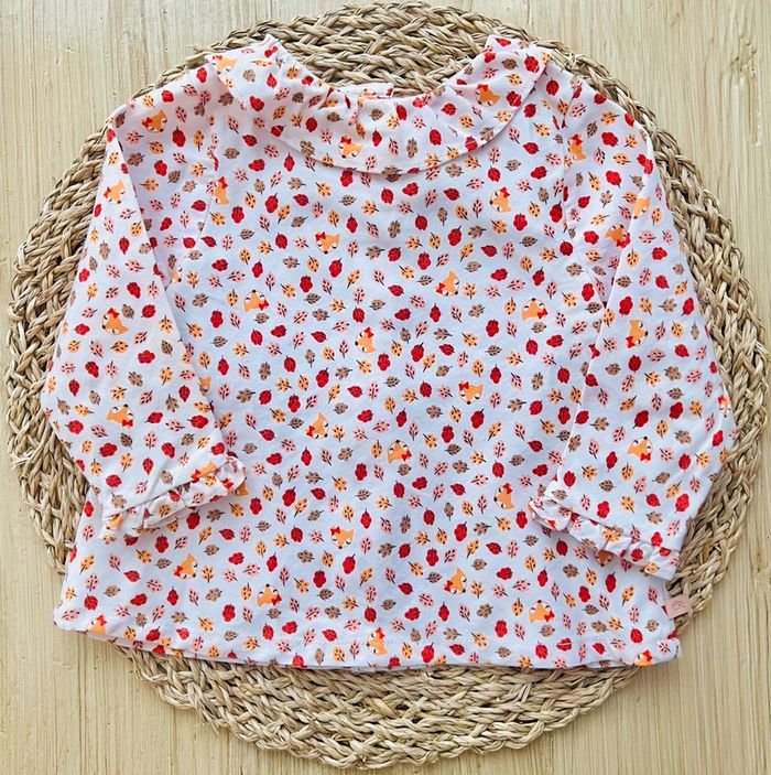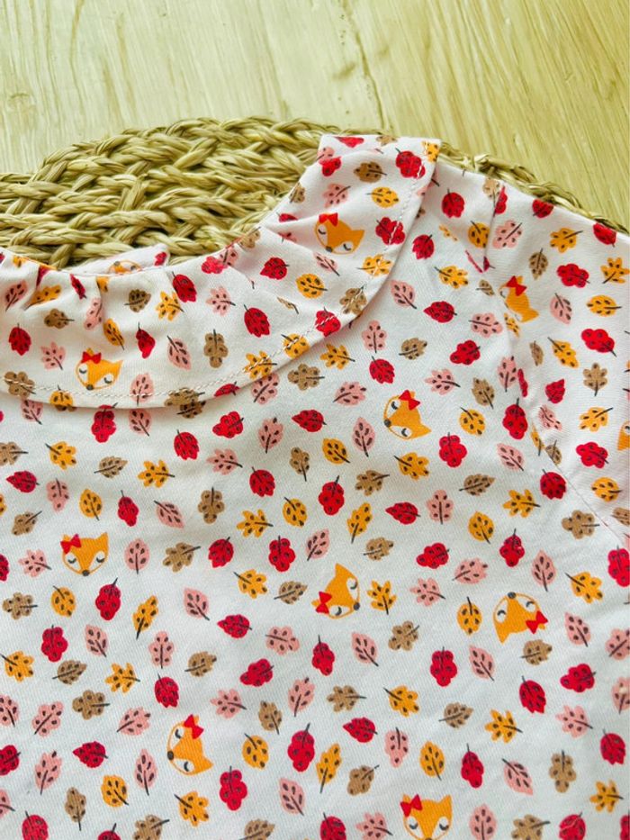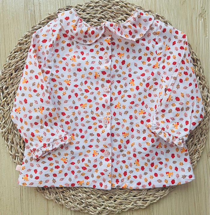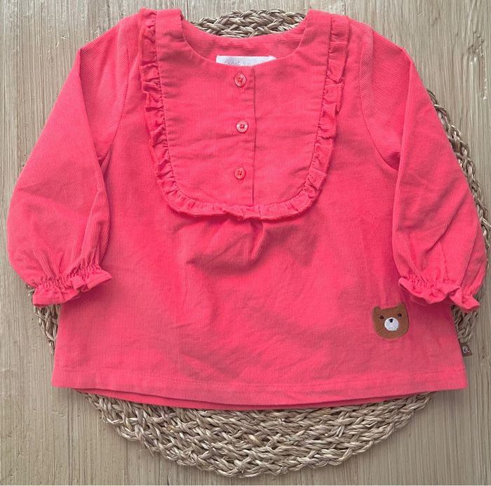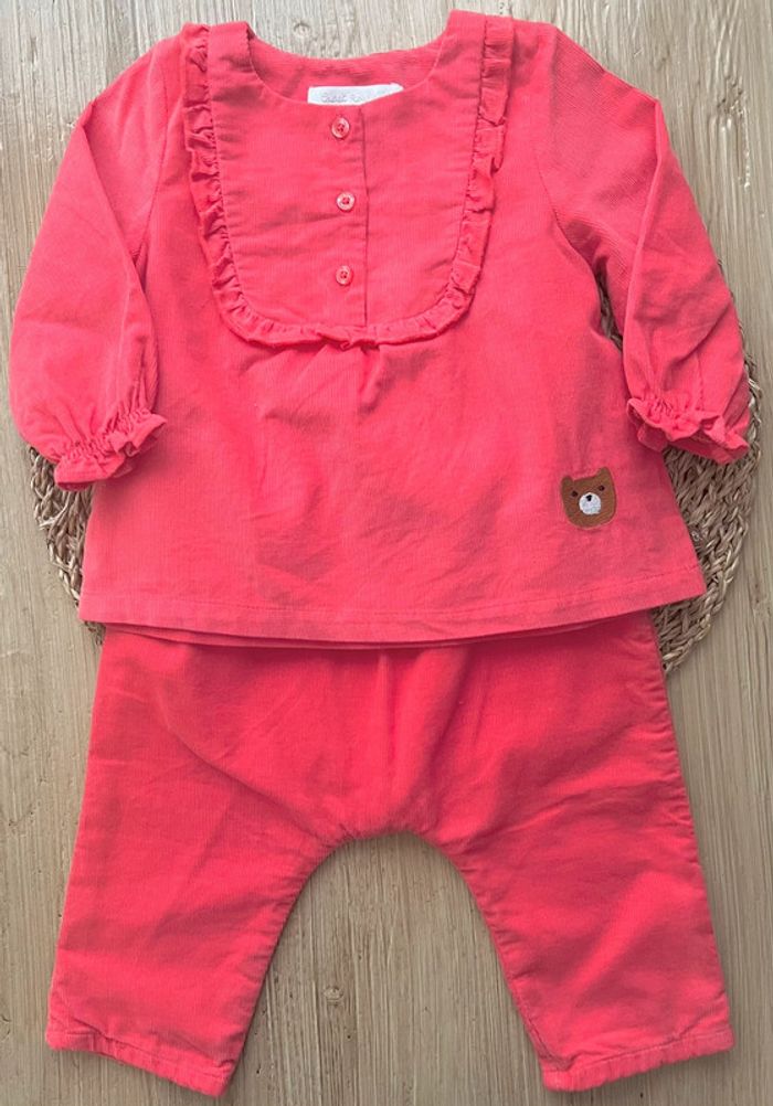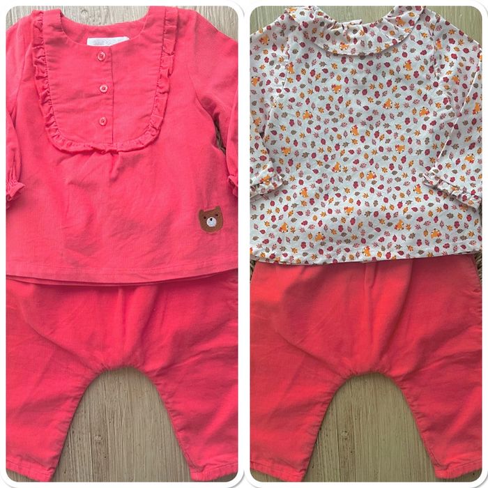 Ensemble de 3 pièces de la marque Cadet Rousselle Paris en très bon état : -1 blouse/tunique en velours, coloris corail, ouverture par 3 boutons à l'avant, col et poignets volantés, broderie petit ourson à l’avant, taille : 6mois -1 blouse/tunique en coton, coloris blanc et petits motifs imprimés automnales, ouverture par boutons sur l’intégralité du dos, col rond volanté, taille : 6mois -1 pantalon en velours coupe sarouel, entièrement doublé, coloris corail, taille élastiquée, taille : 6mois Valeur neuf du lot : 73,00€ Envoi rapide et soigné 📦