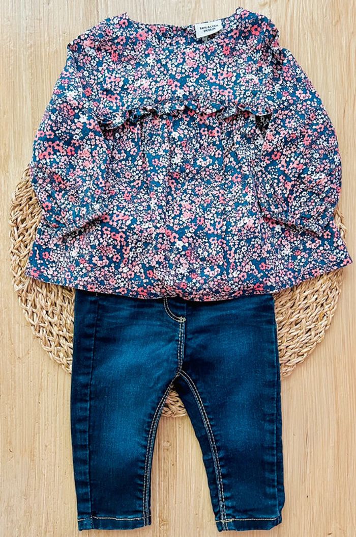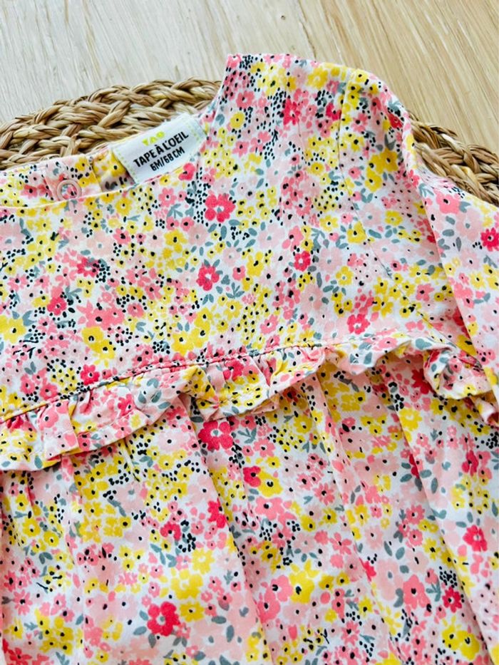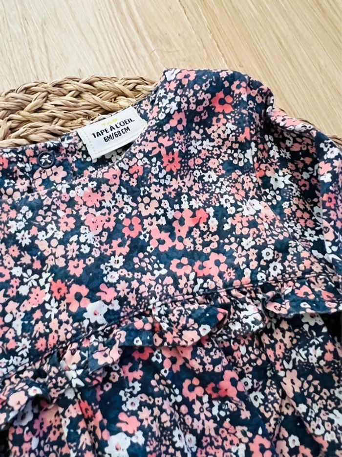 Ensemble de 3 pièces de la marque Tape à l’Oeil en très bon état : -1 blouse/tunique fleurie bleu marine, ouverture par boutons pressions sur l’intégralité du dos, petit volant sur la poitrine, poignets élastiqués, taille : 6mois/68cm -1 blouse/tunique fleurie rose et jaune, ouverture par boutons pressions sur l’intégralité du dos, petit volant sur la poitrine, poignets élastiqués, taille : 6mois/68cm -1 jean/tregging en denim, taille élastique et ajustable par boutons, 2 poches arrière, surpiqûres contrastées, taille : 6mois/68cm Valeur neuf du lot : 40,98€ Envoi rapide et soigné 📦