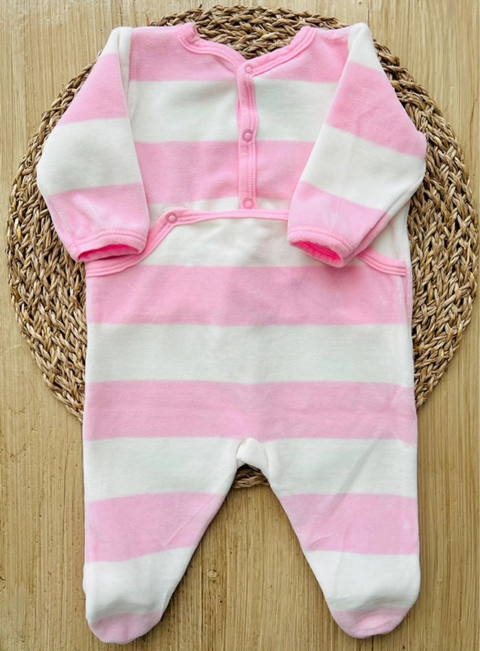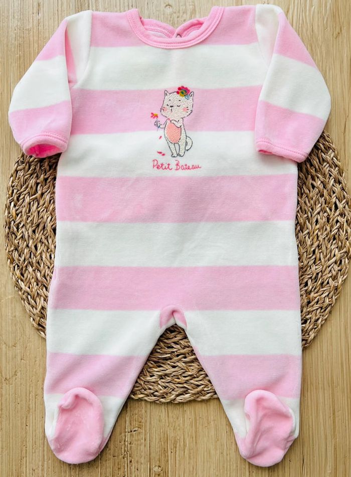 Pyjama dors-bien velours de la marque Petit Bateau en très bon état. Pyjama avec pieds en velours, rayé écru et rose avec imprimé petit chat à l’avant, ouverture pressionnée au dos, finitions bords-cotes, taille : 3 mois/60cm Valeur neuf : 19,99€ Envoi rapide et soigné 📦