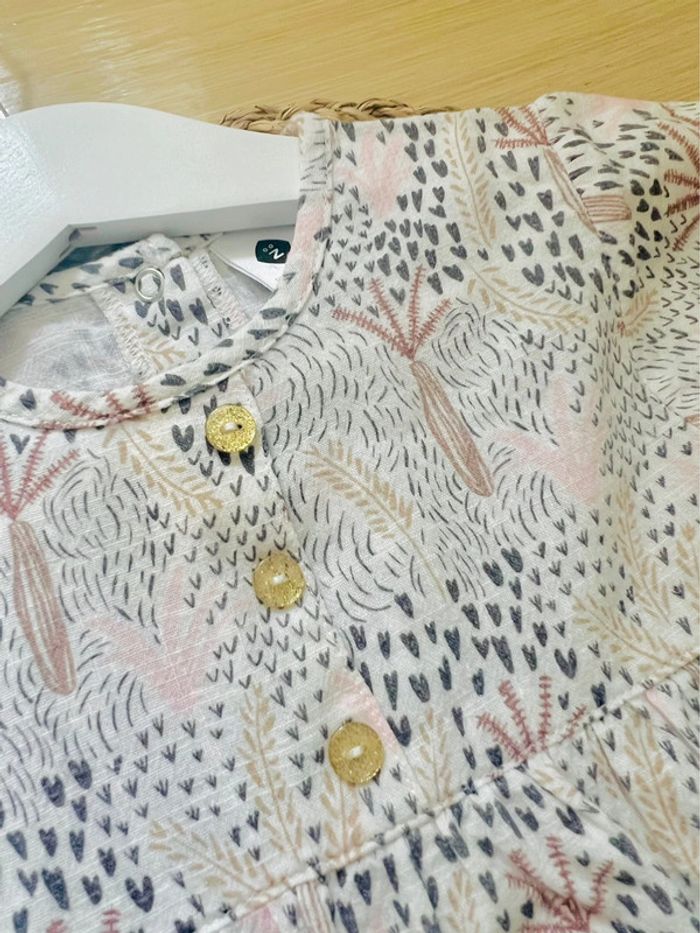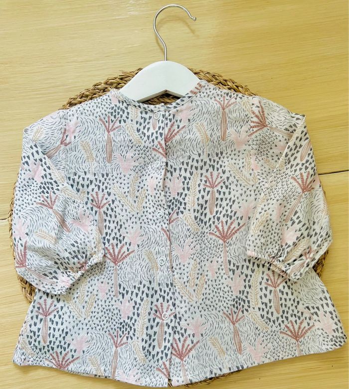 Blouse à motifs de la marque Z Grain de Blé en très bon état. Tunique 100% coton doux, ouverture par boutons pressions en intégralité au dos, poignets élastiqués, coloris blanc avec motifs et petits boutons pailletés dorés à l’avant, taille : 12 mois/74cm Valeur neuve : 14,99€ Envoi rapide et soigné 📦