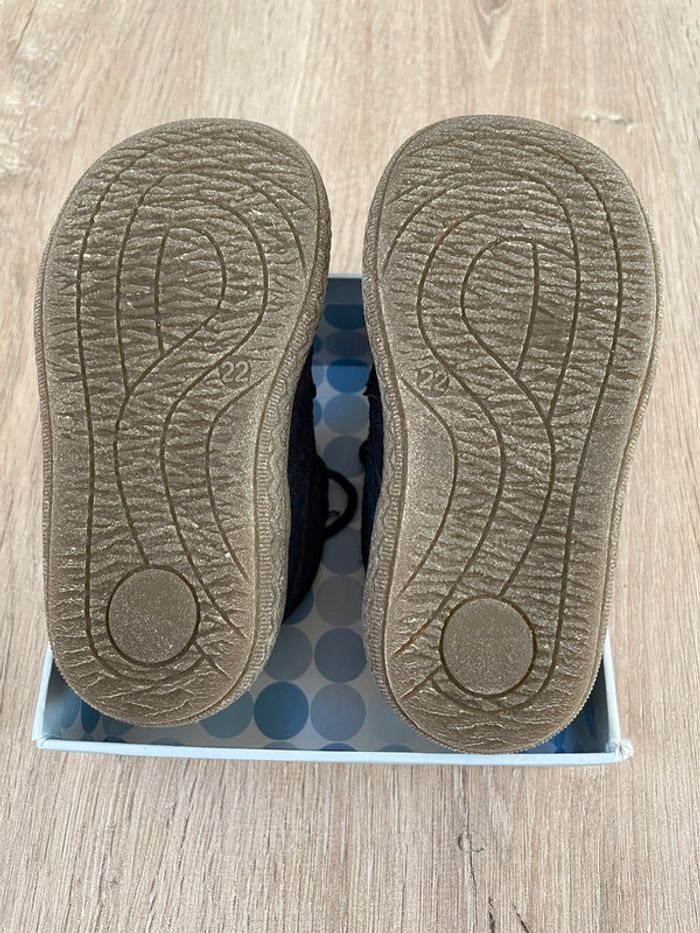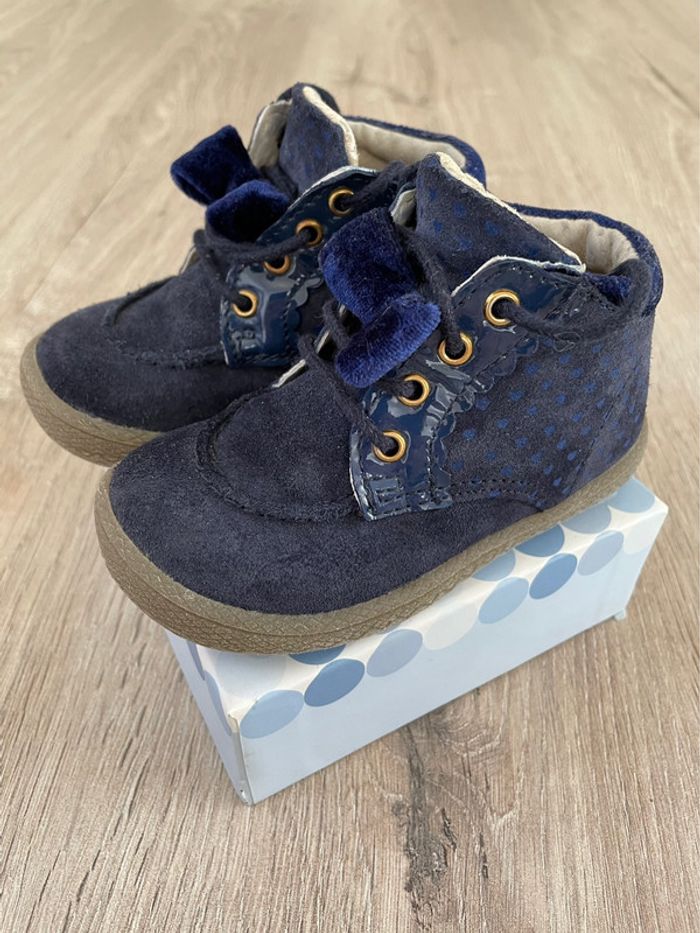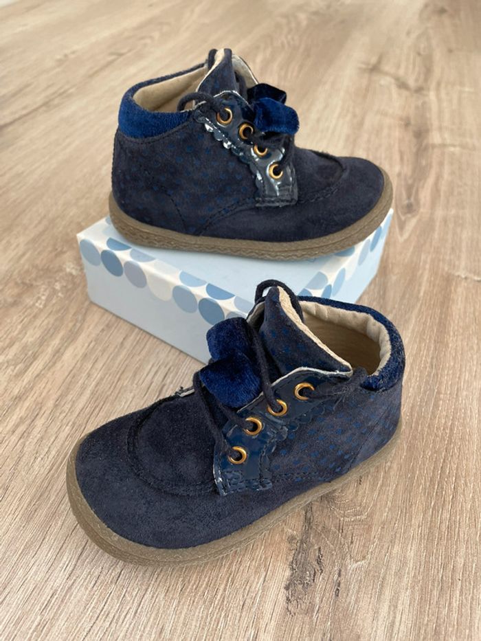 Bottines fantaisie fille, bleu marine en cuir et dessus croûte de cuir, en très bon état. Sans boîte Valeur neuves : 50,99€