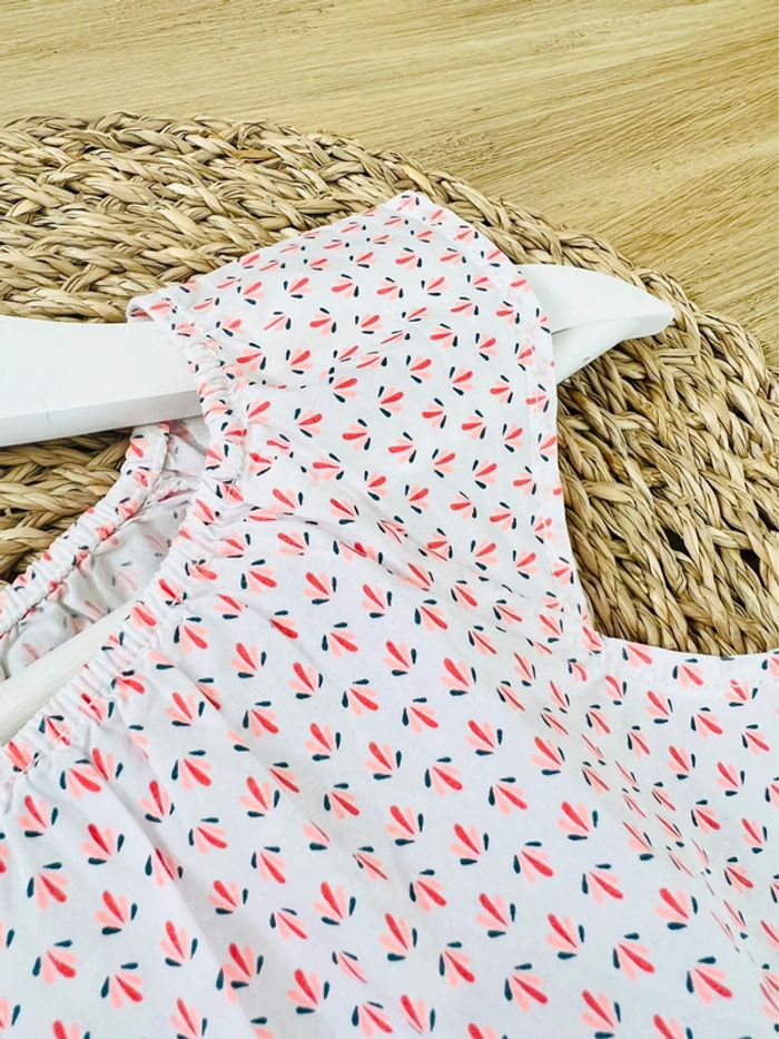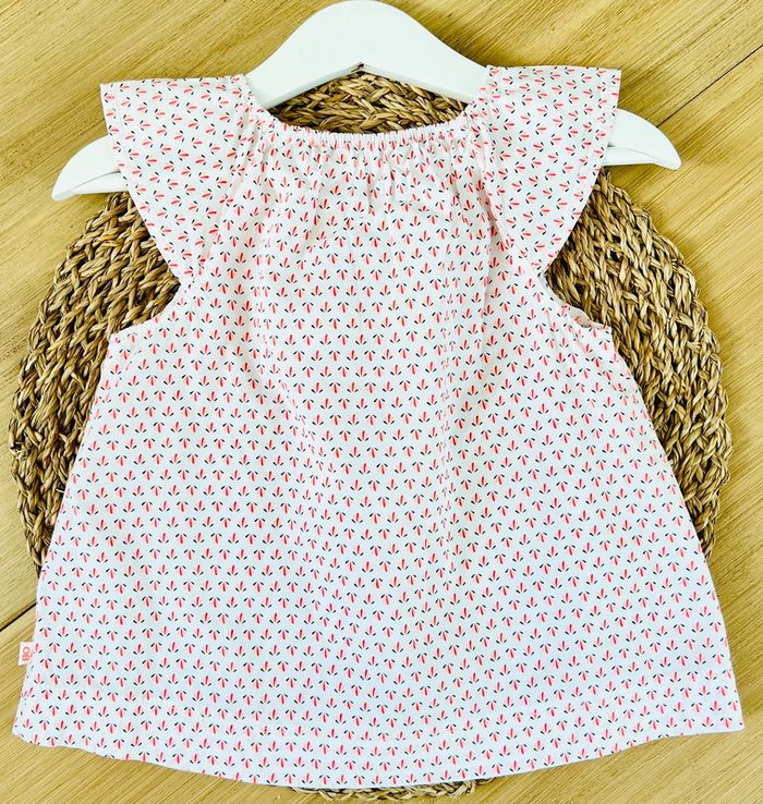 Blouse d’été de la marque Obaïbi en très bon état. En coton très léger, coupe ample et évasée, petites manches volantées et col élastiqué pour un habillage facile. Coloris : blanc et imprimé graphique. Taille : 23 mois (86cm) Valeur neuve : 15,99€ Envoi rapide et soigné 📦
