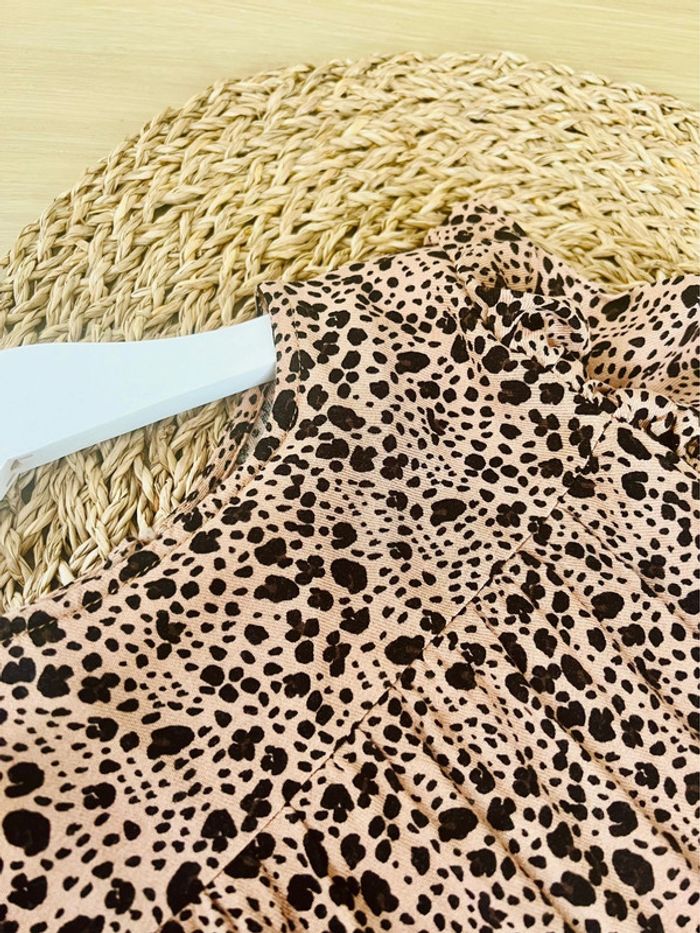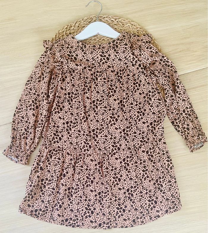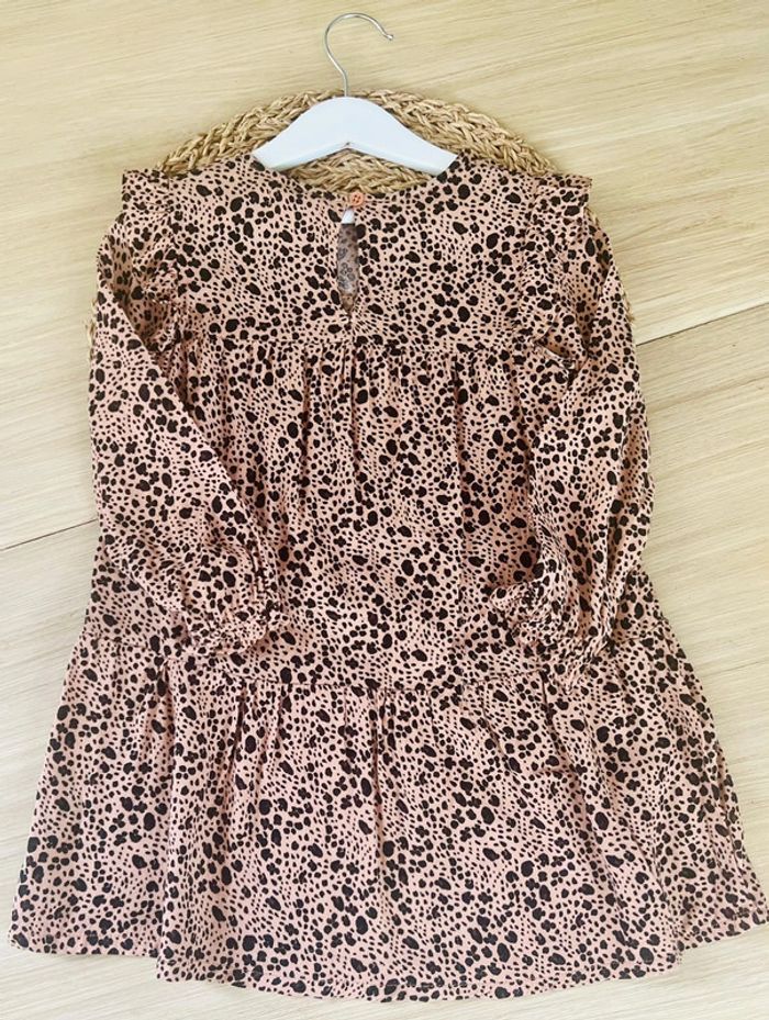 Robe manches longues imprimé type léopard de la marque Vertbaudet en très bon état. Tissu fluide, encolure ronde, volants fantaisie aux emmanchures, fronces sous découpe poitrine, ouverture boutonnée au dos, poignets élastiqués, taille : 4 ans / 104cm. Valeur neuve : 24,99€ Envoi rapide et soigné 📦