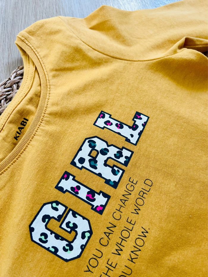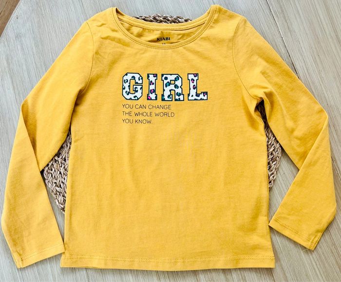 Tee-shirt manches longues de la marque Kiabi neuf sans étiquette (jamais porté). Coloris : jaune moutarde, taille : 4 ans / 98-107 cm Valeur neuf : 6€ Envoi rapide et soigné 📦