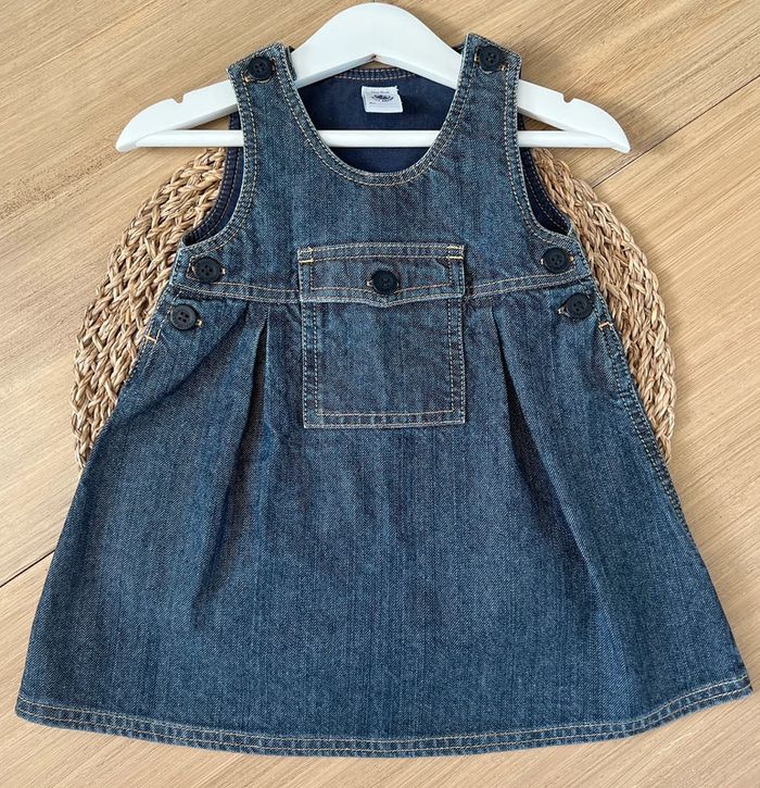 Robe en jeans de la marque Petit Bateau en bon état. Entièrement doublée, ouverture par boutons aux épaules et sur les côtés, poche à l’avant. Taille : 12 mois (74cm) Valeur neuve : 39,99€