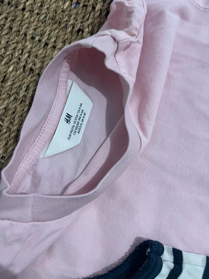Ensemble confortable et pratique pour l’été, taille 4/6 ans : 1 t-shirt H&M rose pâle, manches courtes, basique doux et facile à assortir. 1 débardeur Petit Bateau à rayures marinière (bleu/blanc), 100 % coton, coupe classique et intemporelle. Parfaits pour les journées chaudes ou les vacances. #oginienfant #HM #PetitBateau #marinière #marinièrepetitbateau