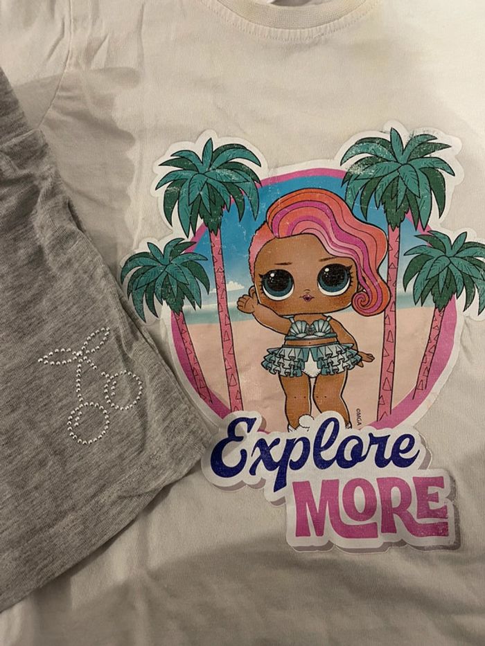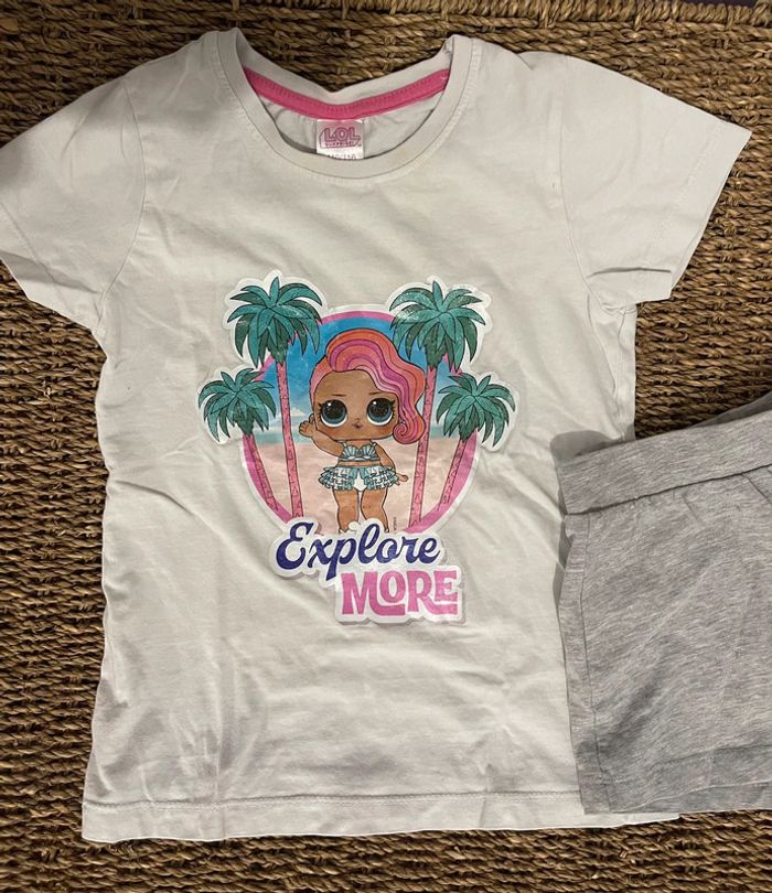 Adorable pyjama court d’été LOL Surprise pour fille, composé de : 1 t-shirt blanc avec imprimé LOL Surprise sur le devant 1 short gris, coupe confortable et élastique à la taille Matière légère et douce, parfaite pour les nuits chaudes. Taille 4/5 ans #oginienfant #LOLSurprise #PyjamaFille #PyjamaLOL #EnfantFille #VêtementsFille #PyjamaÉté #4ans