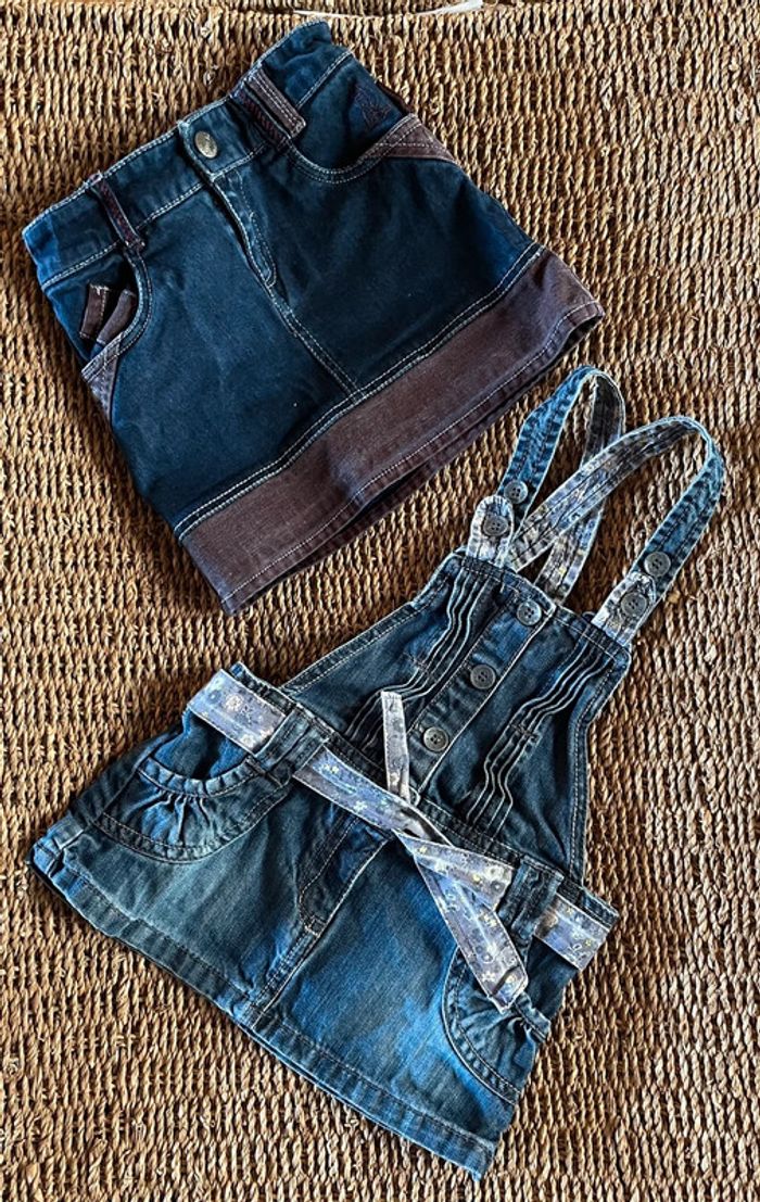 Salopette et jupe denim + Jupe denim et short