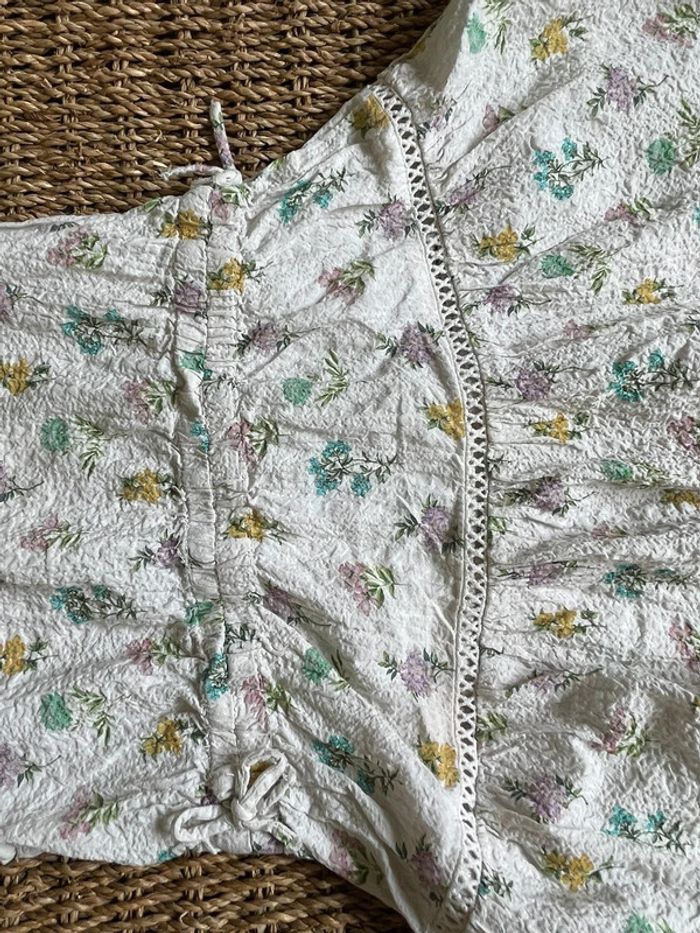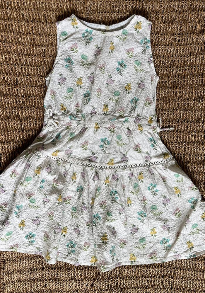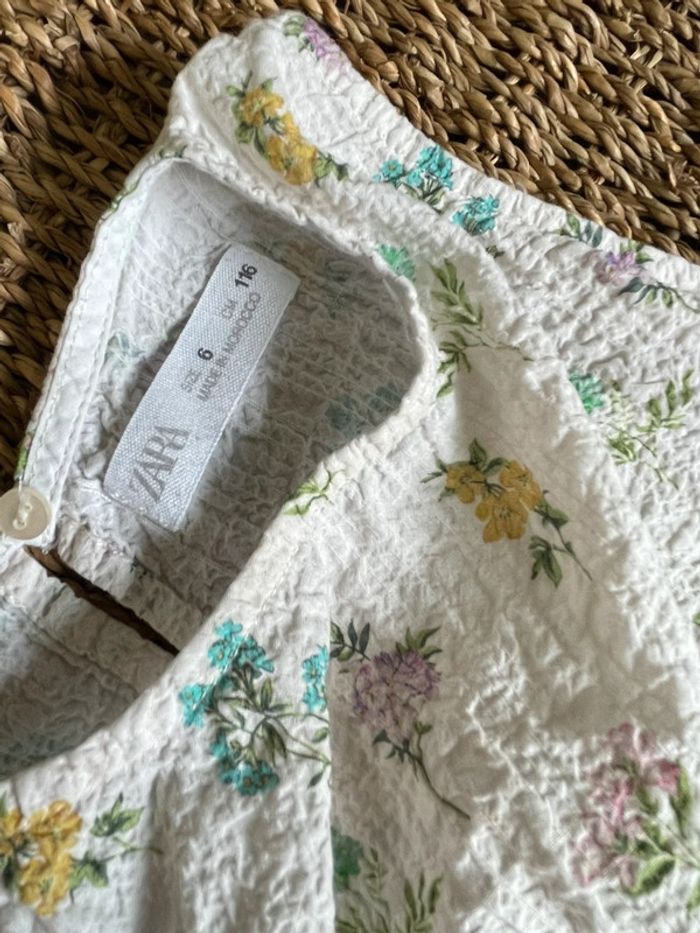 Robe Zara en coton gaufré blanche sans manches, motifs liberty all over - 6 ans. #oginienfant #zara #zaragirl #zarafille #robezara