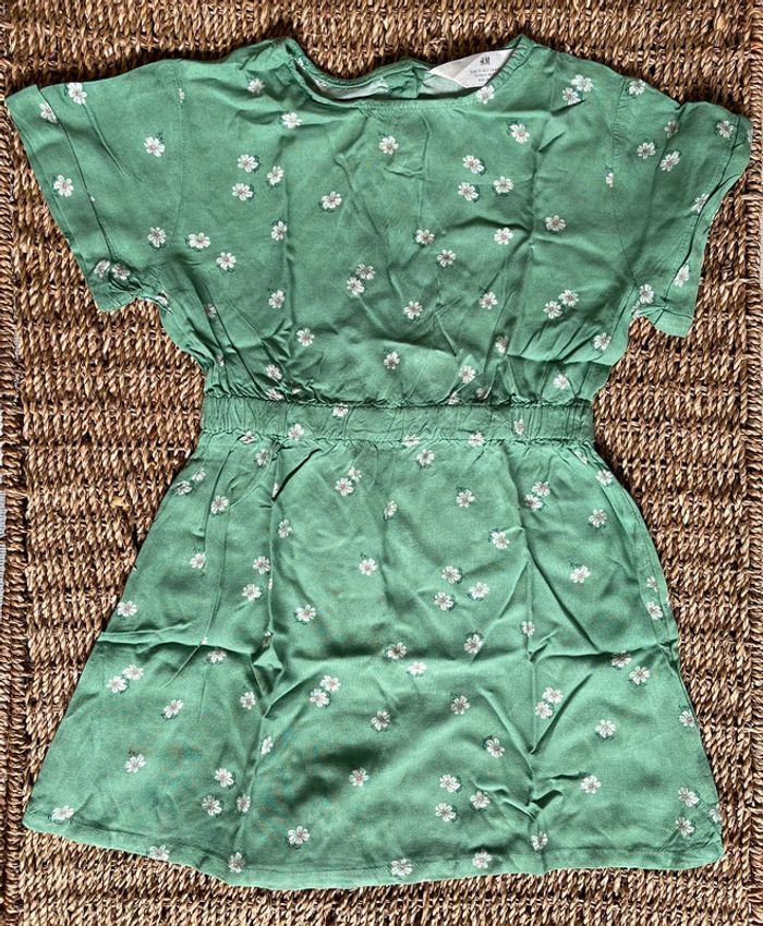 Robe verte H&M en coton léger à motifs marguerite all over - 4/5 ans. #oginienfant #hm #hmfille #robehm