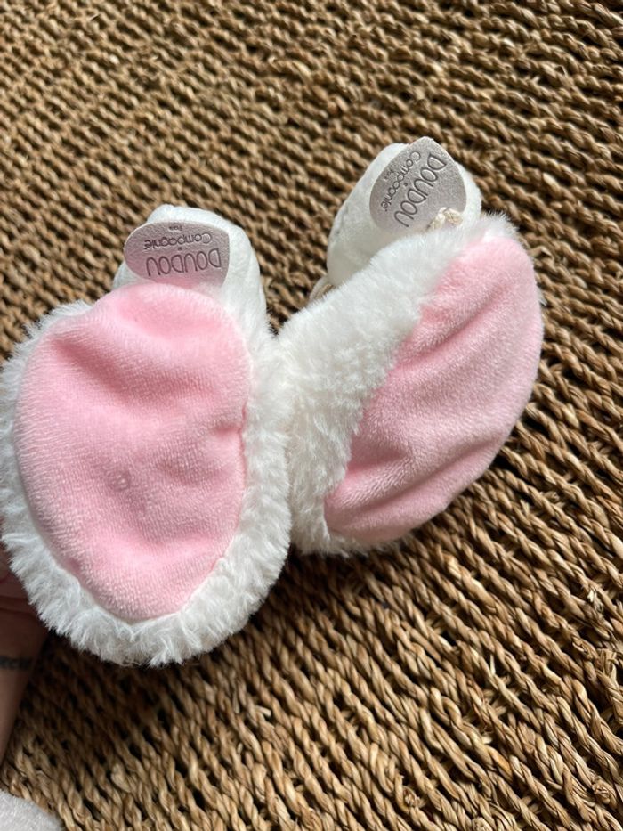 Ces petits chaussons Lapin "Bonbon" vous feront craquer, tout simplement ! D'une extrême douceur, et très beaux, ils sont aussi parfait pour réchauffer les pieds de votre enfant. Les petits grelots feront la joie de bébé quand il bougera ses petits pieds. - Dès la naissance - Taille 0/6 mois - Des petits grelots hochet dans la tête du lapin - Un classique de la marque : un cadeau idéal - Une douceur +++ Doudou et compagnie. #oginienfant #doudouetcompagnie