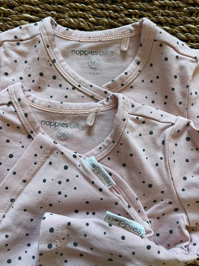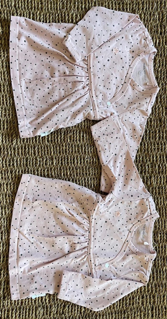 Lot de 2 adorables robes de la collection Noppies Baby. La robe est entièrement recouverte d'un subtil imprimé moucheté. Elle se ferme au niveau de la poitrine et sa jupe est ample. Le tissu stretch en coton doux est confortable. Grâce au bouton-pression à la poitrine, habiller et changer vos jumelles est un jeu d'enfant. Taille 1-2 mois. #oginienfant #lotjumelles #noppies #noppiesbaby #oginitwins