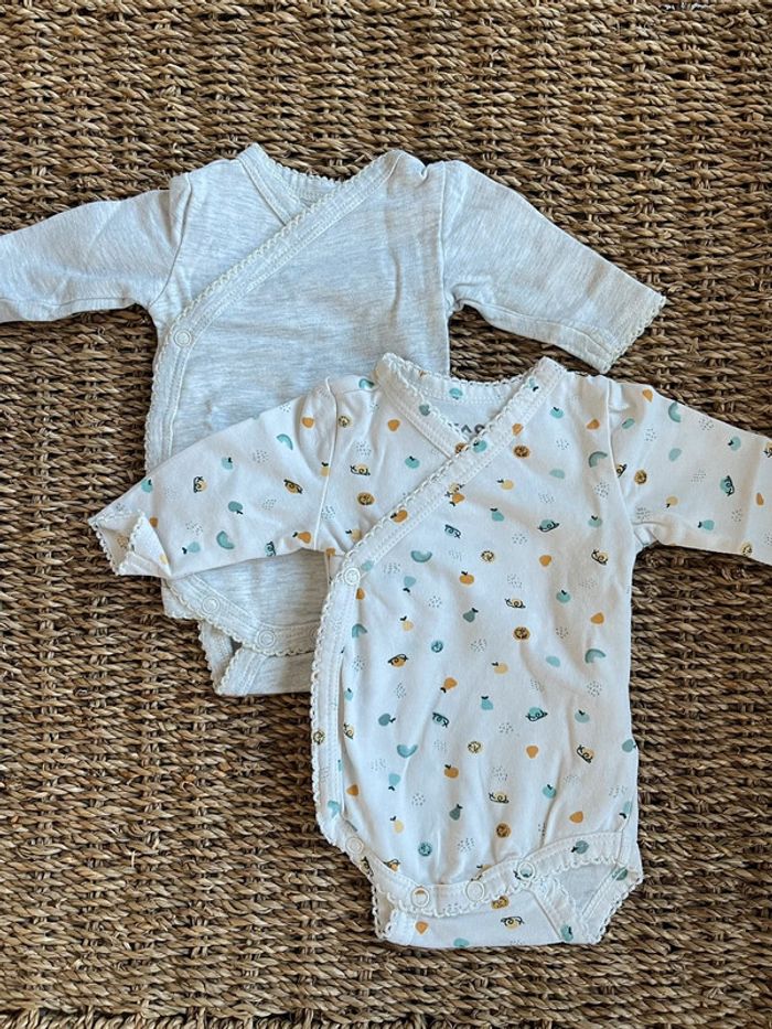 • Lot de 2 bodies croisé à manches longues • 1 gris uni, 1 écru avec motifs • Boutons pression au niveau de l'entrejambe • Ouverture côté pressionnée cache-cœur Body en élasthanne tout doux et ultra confort, pour laisser bébé s'étirer, s'éveiller, rigoler et se remuer. #oginienfant #twins #twinset #jumeaux #jumelles #préma #premature #oginitwins