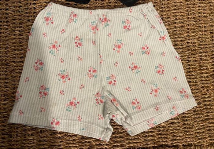 Ensemble de nuit : - 1 haut manches longues Mickey Mouse - Disney - 1 short blanc rayé bleu fleuri - Petit Bateau 18/24 mois. #oginienfant #mickey #mickeymouse #disney #petitbateau