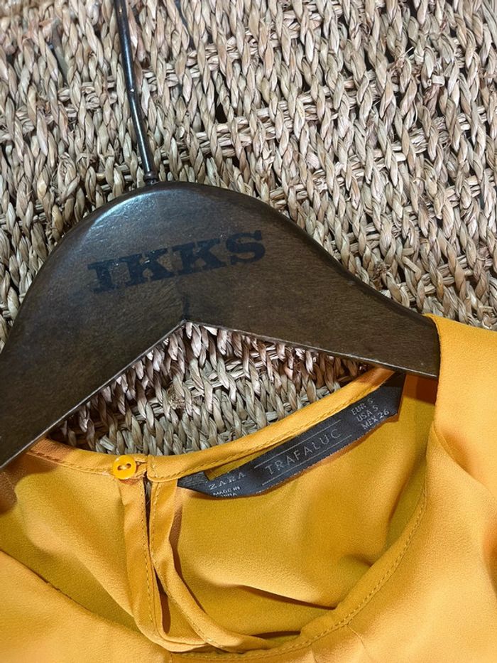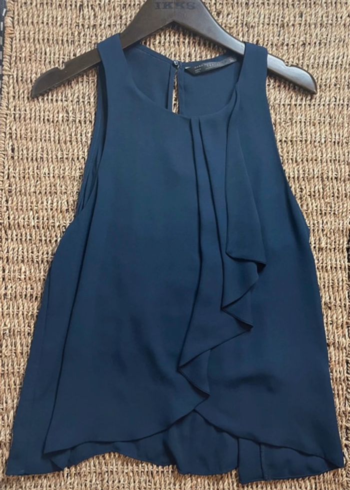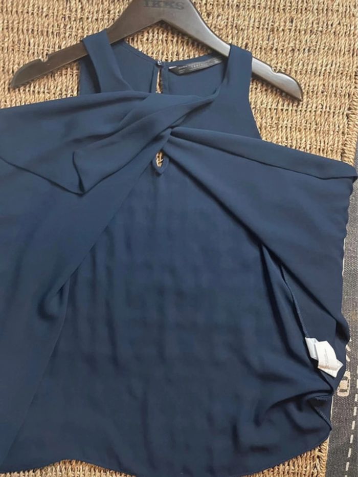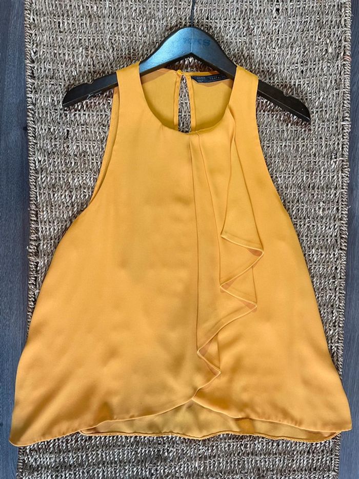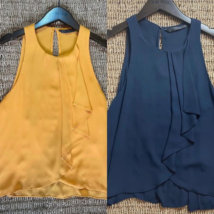 Haut chemisier sans manches jaune moutarde - Zara, taille S, petite déchirure sur le côté … Haut chemisier sans manches bleu marine - Zara, taille XS (mais peux convenir à une taille S). #oginifemme #zara #zarawoman #zarafemme
