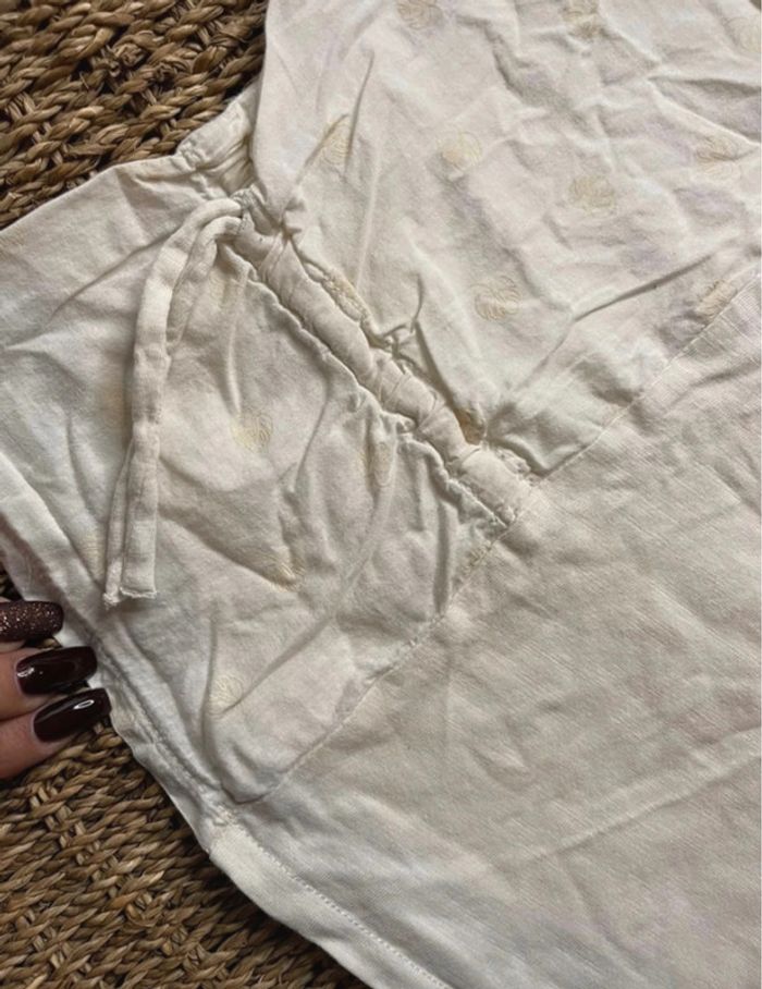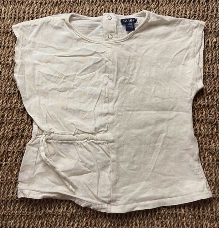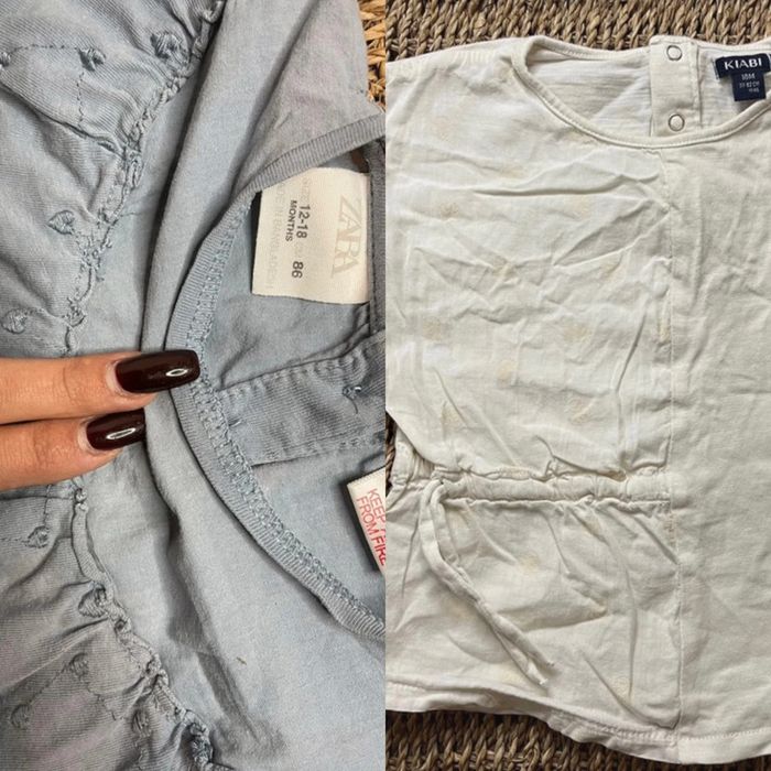 Tee-shirt à manches courtes Zara (un petit peu déchiré au niveau des boutons à l’arrière) broderie anglaise - 18 mois. Tee-shirt blanc taille ajustable motif monstera, Kiabi - 18 mois. #oginienfant #zara #kiabi #kiabifille #zarakids
