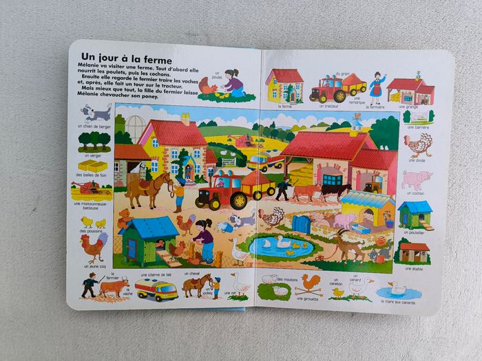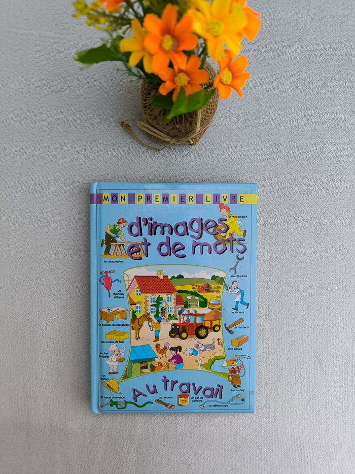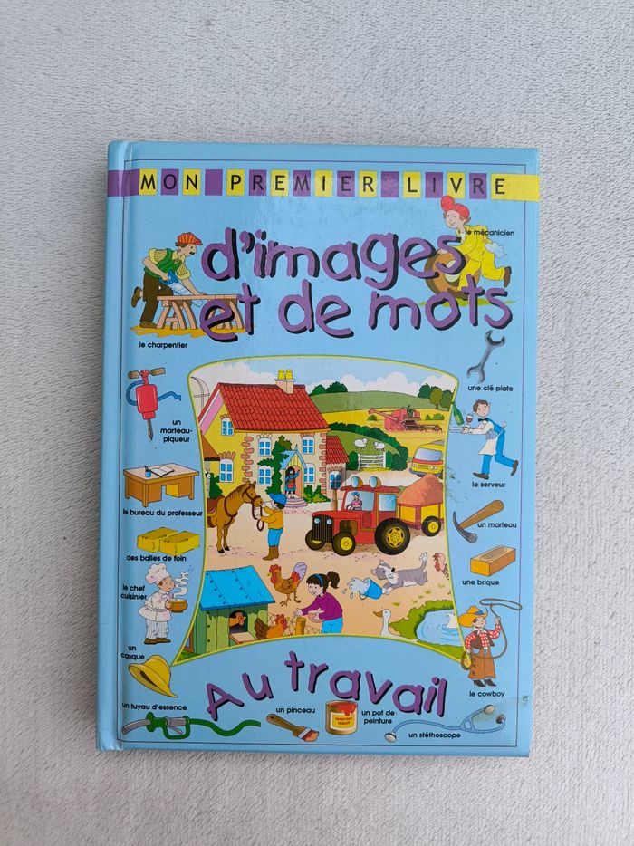 Livre imagier Mon premier livre d'images et de mots : Au travail • Pages cartonnées -> Toutes les sortes de métiers -> Un jour à la ferme -> Une visite au garage -> Un voyage au cirque -> Une journée sur le chantier de construction -> Une visite chez le dentiste, le docteur, à l'hôpital -> Tous les types de sport -> Une nuit au théâtre -> Les gens qui nous aident -> Retour à l'école • Intérieur du livre en très bon état • Coins légèrement abîmés En très bon état #evelyne_livres