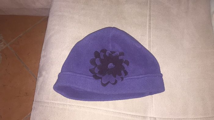 Bonnet bleu en polaire avec une fleurs, en excellent état