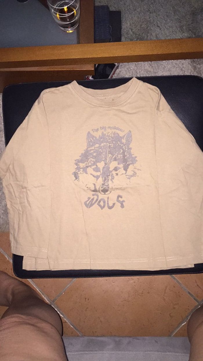 teeshirt beige en très bon état couleur plus foncé que beige. motif gris