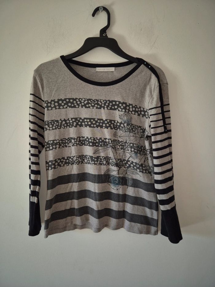 Tee-shirt Armand Thiery en très bon état. Avec strass sur les manches. Taille 2. 100% coton #femme38celine14